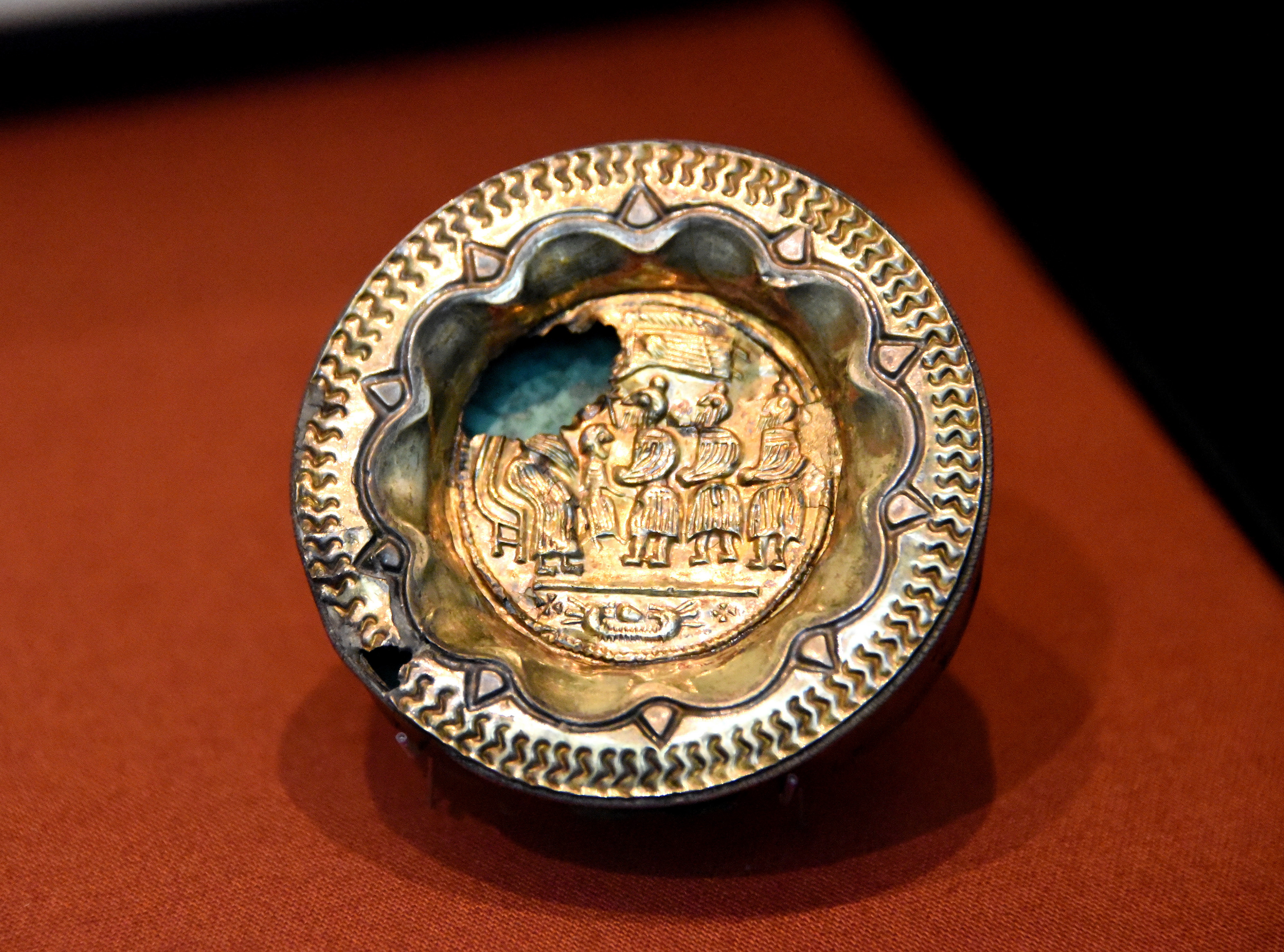 The Romanized peoples of Pannonia remained Christian under Avar rule. This brooch from the region shows the adoration of the Magi, a well-known Christian scene. On the right, 3 bearded men bring gifts to the infant Christ in the stable at Bethlehem. The arrangement of the scene is so similar to Byzantine examples that it was probably copied from a Byzantine source, reflecting continuous links with the Empire. Possibly from Hungary. Late 500s-600s CE. (The British Museum, London)