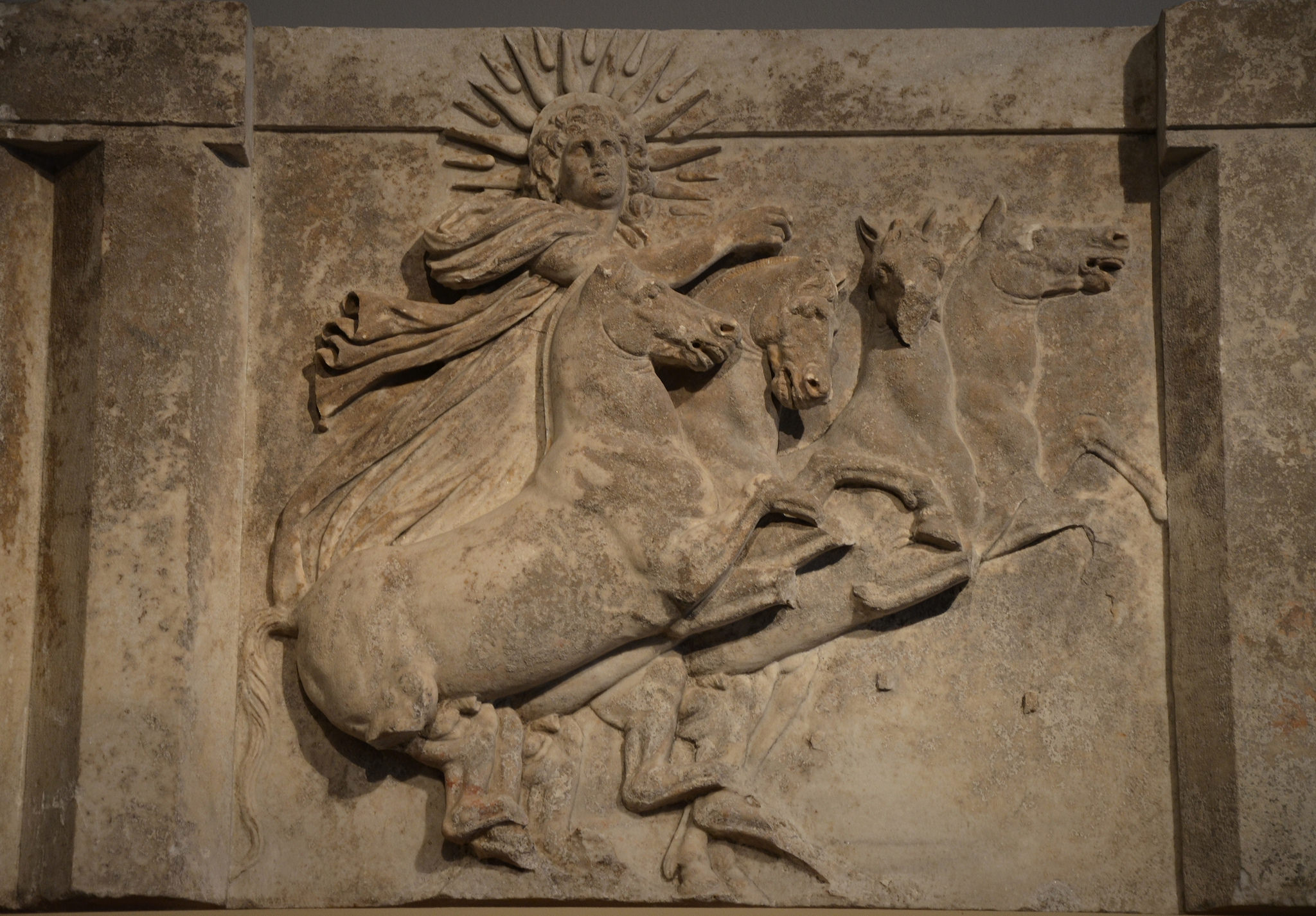 Helios, the sun god riding his chariot. Relief architrave from the Temple of Athena at Troy, 300-280 BCE. (Altes Museum, Berlin)