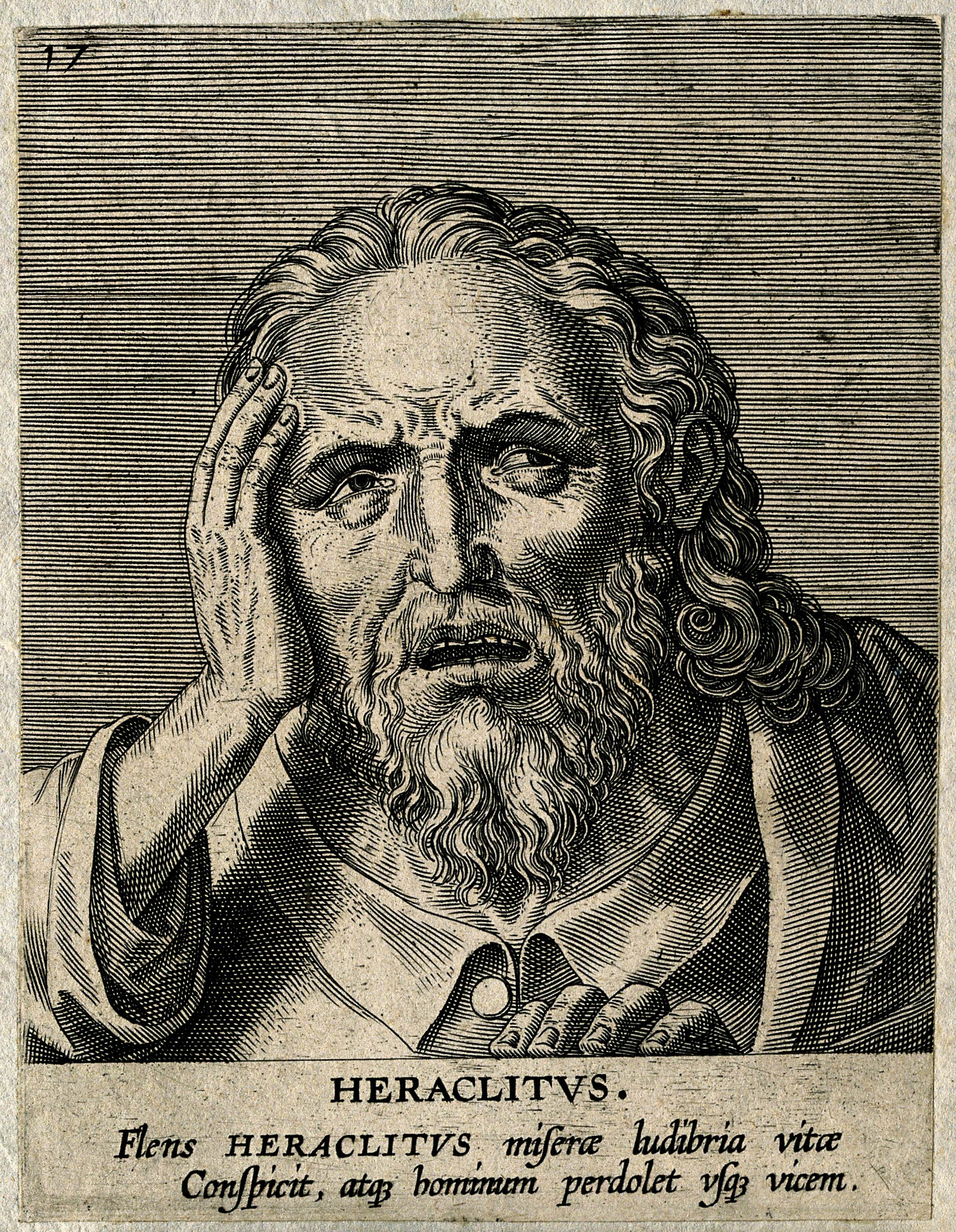 A line engraving of the 5th century BCE Greek philosopher Heraclitus of Ephesus. (From the Wellcome Library of Portraits)