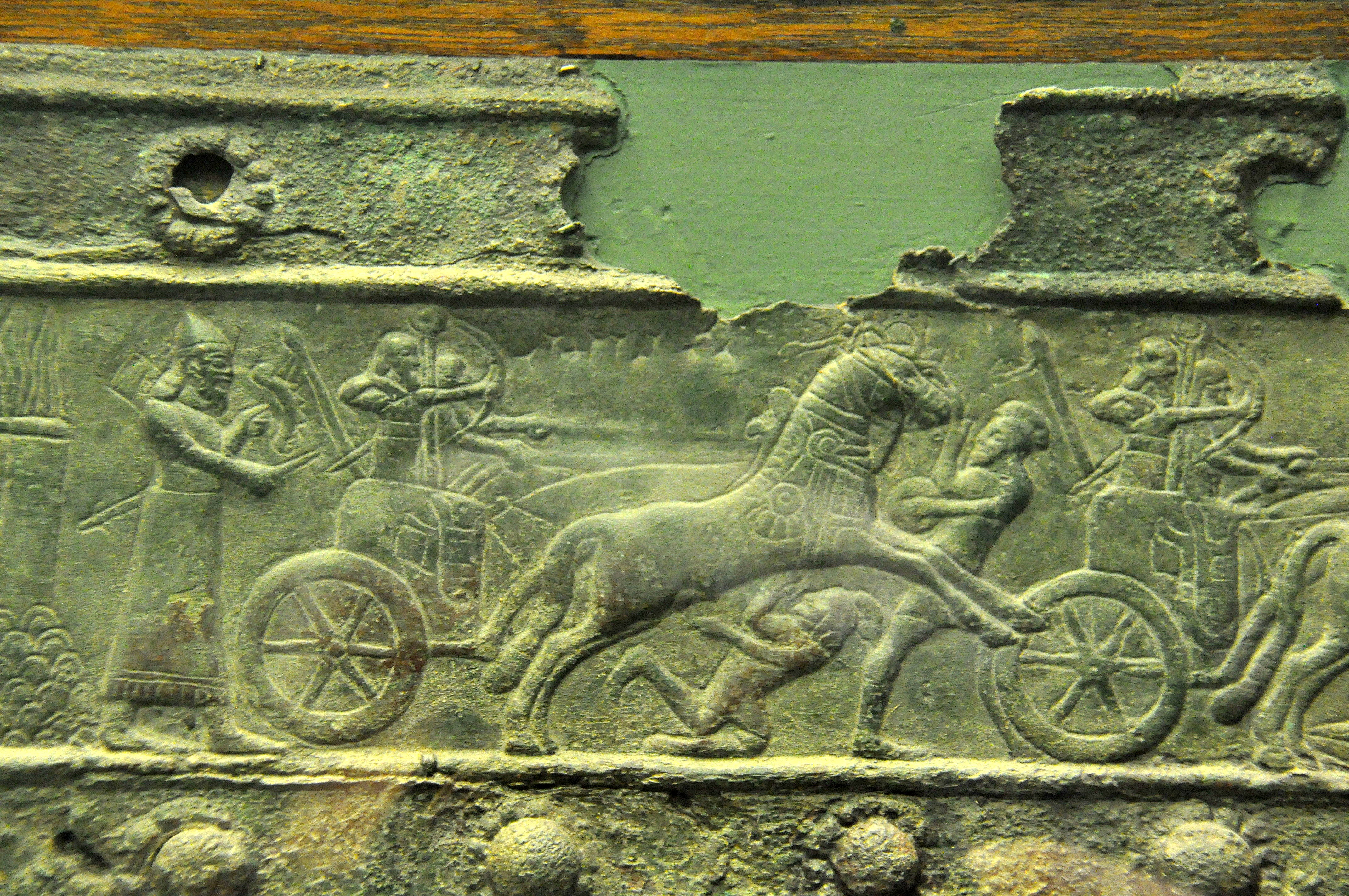 Detail of the bronze casing of the Balawat gate. From Balawat (Imgur-Enlil), northern Mesopotamia, Iraq. Neo-Assyrian Period, reign of King Shalmaneser III, 858-824 BCE. (The British Museum, London)