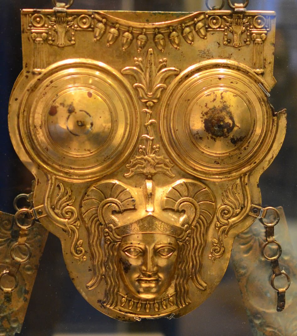 A Punic gilded bronze cuirass from Ksour Essaf, 3rd-2nd century BCE. (Bardo National Museum, Tunisia)