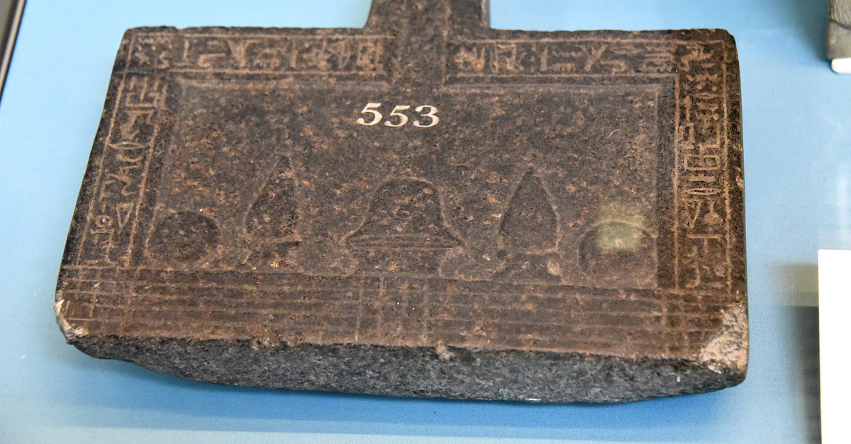 The surface of this black granite offering table is carved in relief with images of food and drink offerings. From Egypt. 12th or 13th Dynasty, circa 1985-1750 BCE. (The British Museum, London)