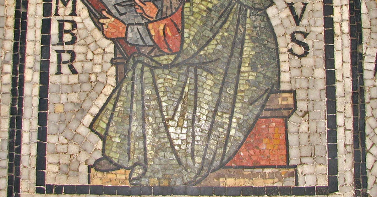 Mosaic floor of Worcester College's chapel c.1791 CE depicting St. Ambrose, Bishop of Milan.