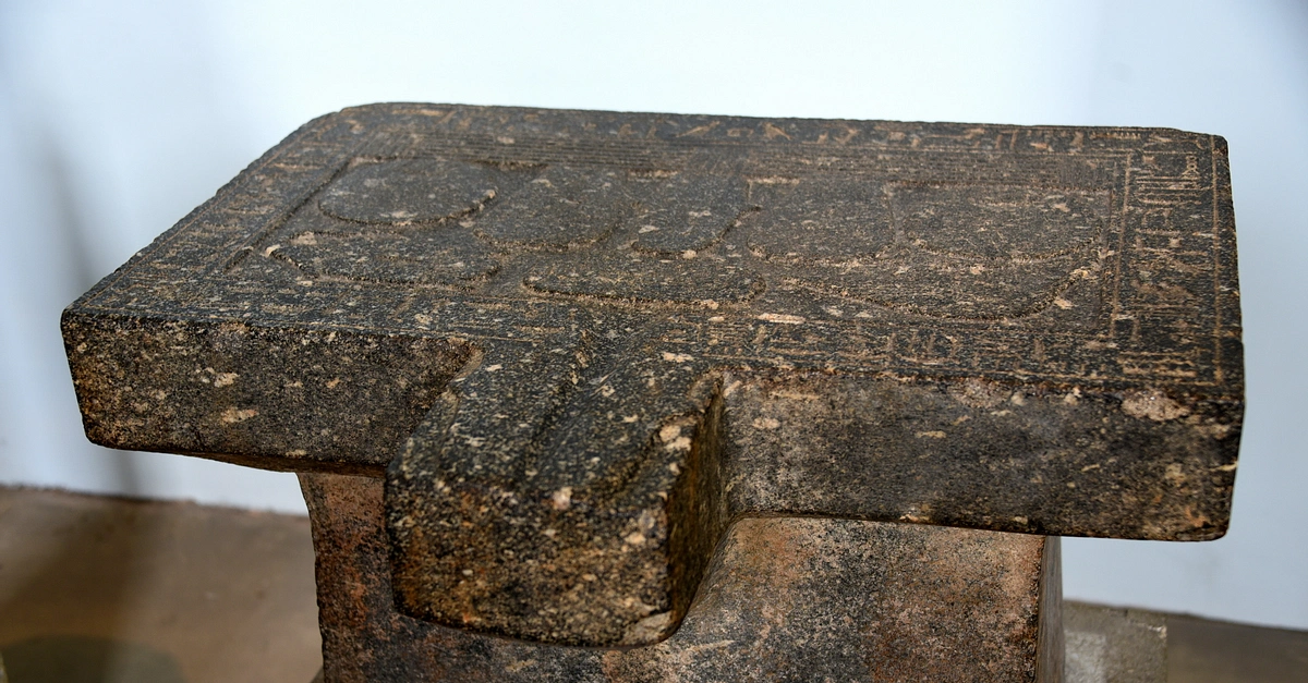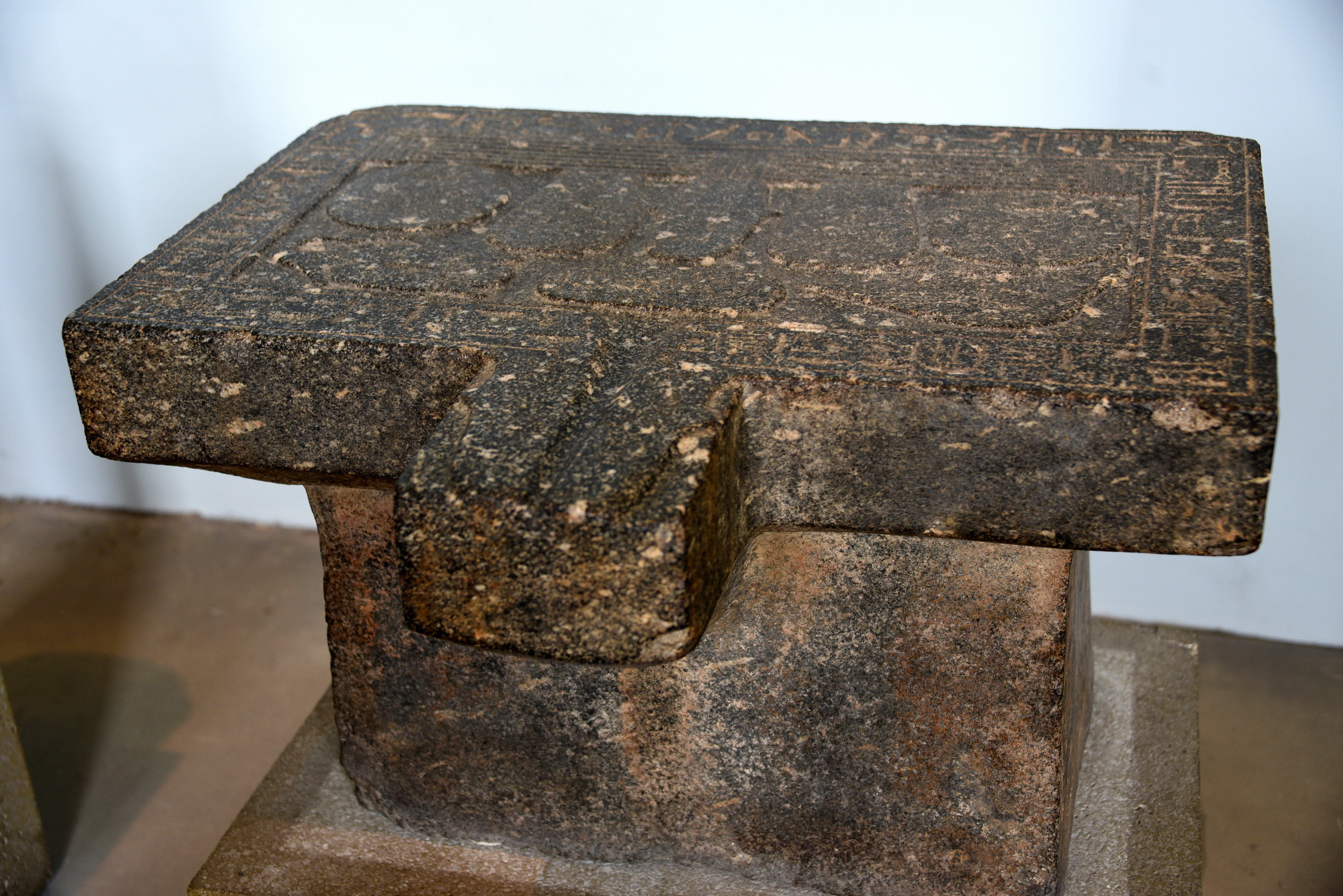 This offering table, from a temple or a tomb, bears a depiction of a mat laid with food offerings; loaves, water vessels, and fowl. Ritual libations were poured over the images to purify them for the magical consumption by the owner's spirit. The water ran off via the spout. The inscription identifies the owner as Nesptah, son of Governor Montuemhat. Nesptah inherited his father's worldly and priestly offices. Early 26th Dynasty, reign of Psamtek I, circa 650 BCE. From Thebes, probably from Asasif, Egypt. (The British Museum, London).