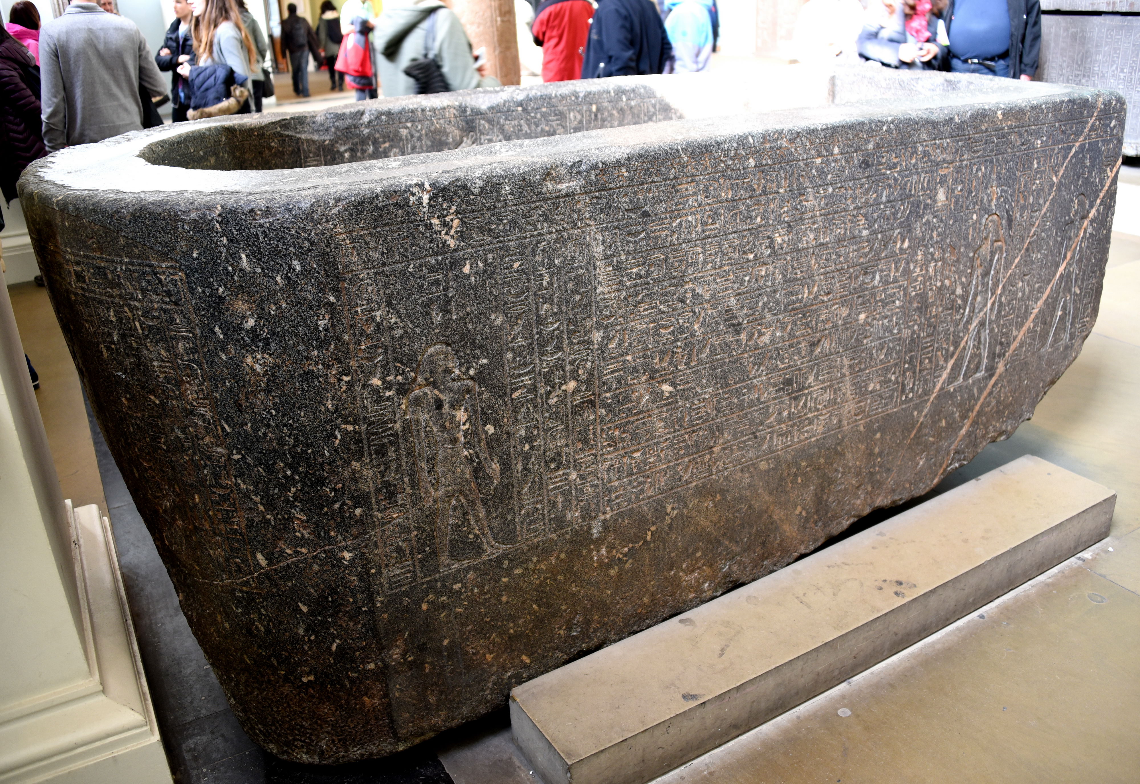 Sarcophagus of Hapmen, found in Cairo, Ibn Tulun Mosque (reused as a ritual bath); original location is unknown. 26th Dynasty, c. 624-525 BCE.