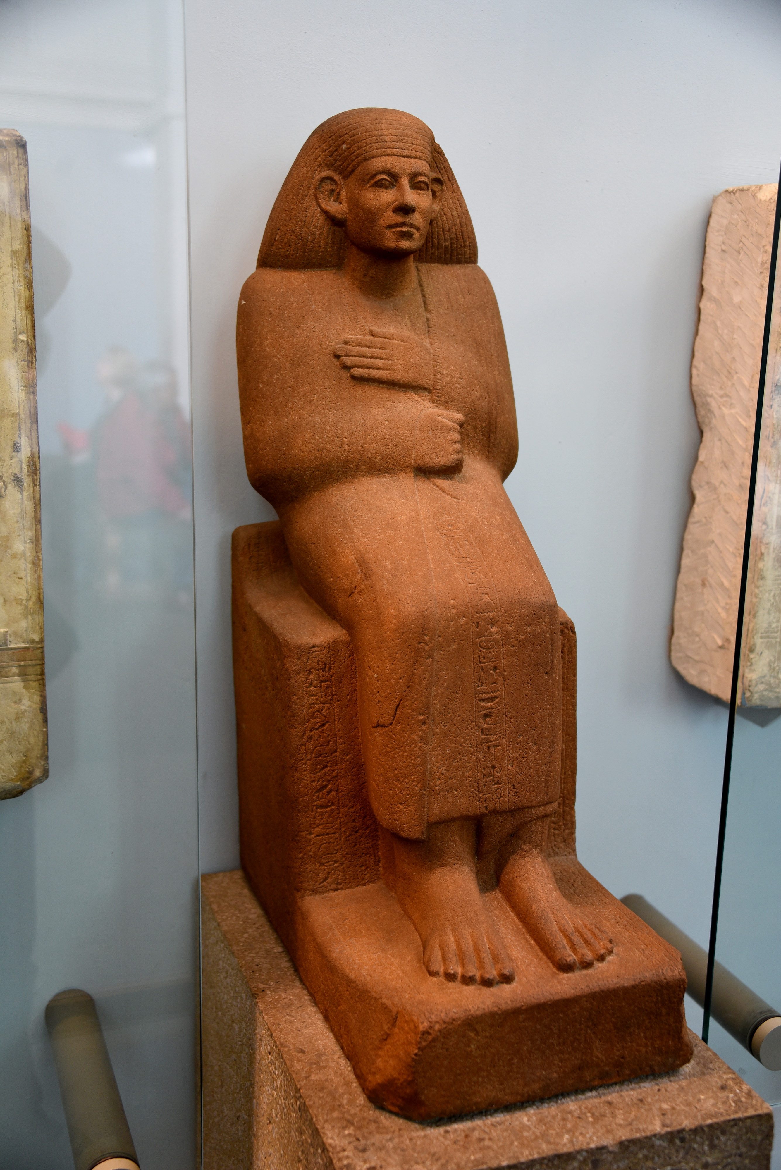 Rehuankh was mayor of Abydos, where Osiris (the god of death and the afterlife) had his principal temple. He was also a "senior lector priest": a scholar with knowledge of rituals and sacred texts. The inscriptions on this statue are of unusual content and are probably composed by Rehuankh. They describe his close involvement with the temple's daily affairs, ensuring a steady flow of offerings. He also took part in an unusual festival that re-enacted the mythical victory of Osiris over his enemies. Rehuankh played a ceremonial role aboard the sacred boat that carried the god's cult effigy in a river procession. Rehuankh's statue stood in the necropolis of Abydos, in an offering chapel for his mortuary cult. It is made of quartzite, a very hard stone only quarried in Heliopolis (now part of modern-day Cairo). Its use was sporadic and was reserved for kings and selected royal favorites. 12th Dynasty, 1860-1830 BCE. From Egypt, Abydos, necropolis behind the temple of Osiris, offering chapel of Rehuankh. (The British Museum, London).