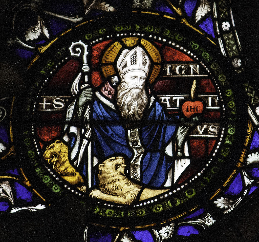 Stained glass detail from a window in St Paul's within-the-Walls, Rome, depicting Ignatius of Antioch (35-108 CE).