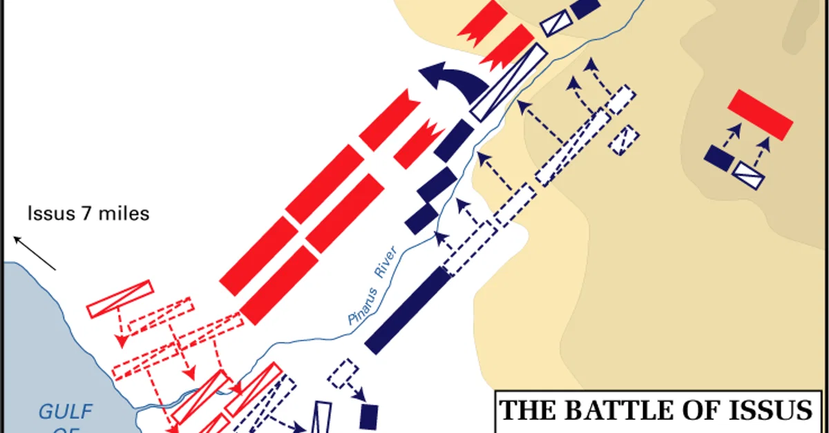Academy, Frank Martini. Cartographer, Department of History, United States Military. "The Battle of Issus - The Decisive Moment." World History Encyclopedia, April 26, 2012. https://www.worldhistory.org/image/546/the-battle-of-issus---the-decisive-moment/.