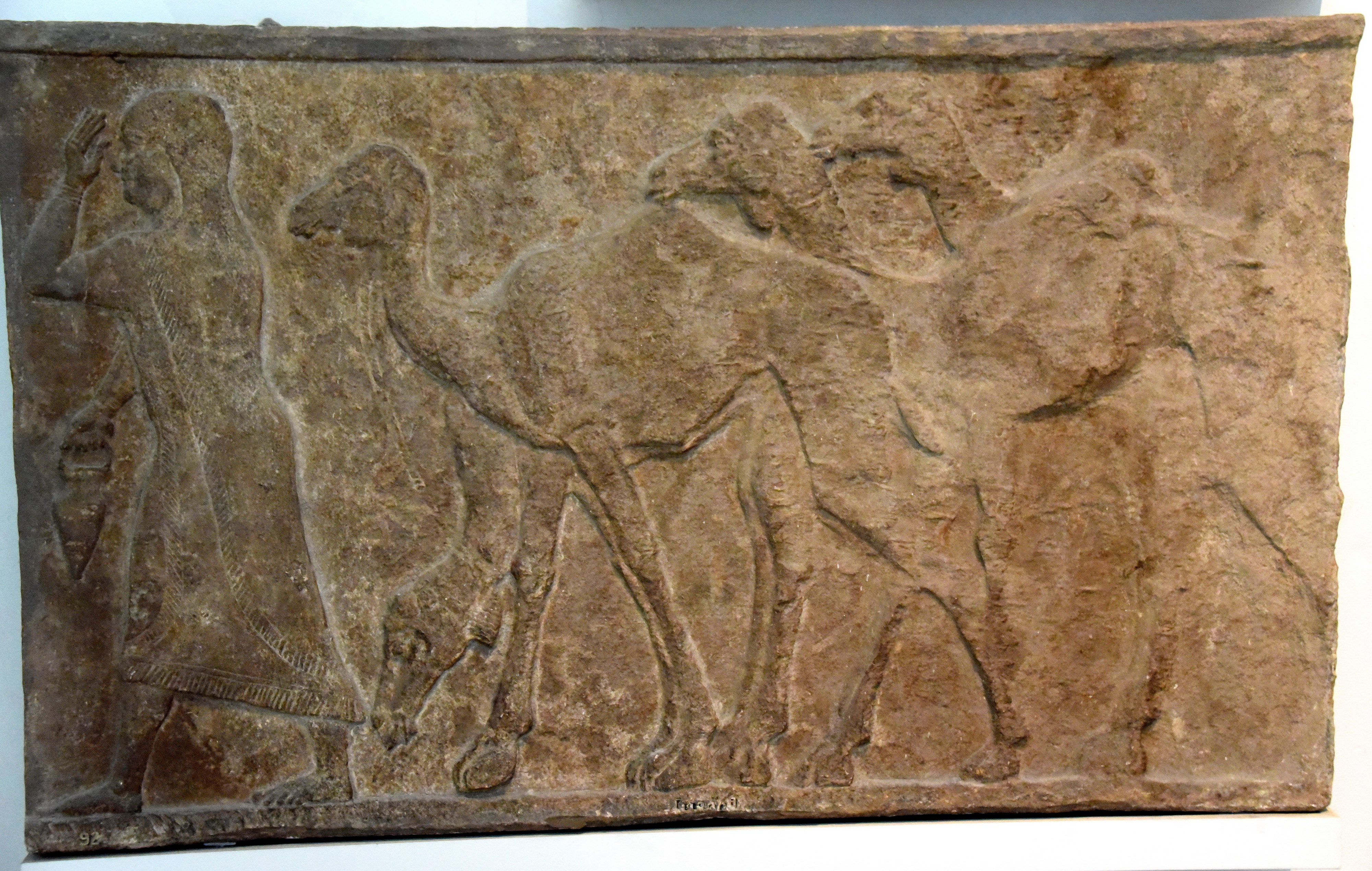 The woman on the left and the herd of camels behind her are part of a procession of prisoners and booty captured during one of the military campaigns of Tiglath-pileser III (reigned 744-727 BCE) against Arab enemies. Assyrian, about 728 BCE. From the Central Palace at Nimrud (ancient Kalhu), Mesopotamia, Iraq. (The British Museum. London).