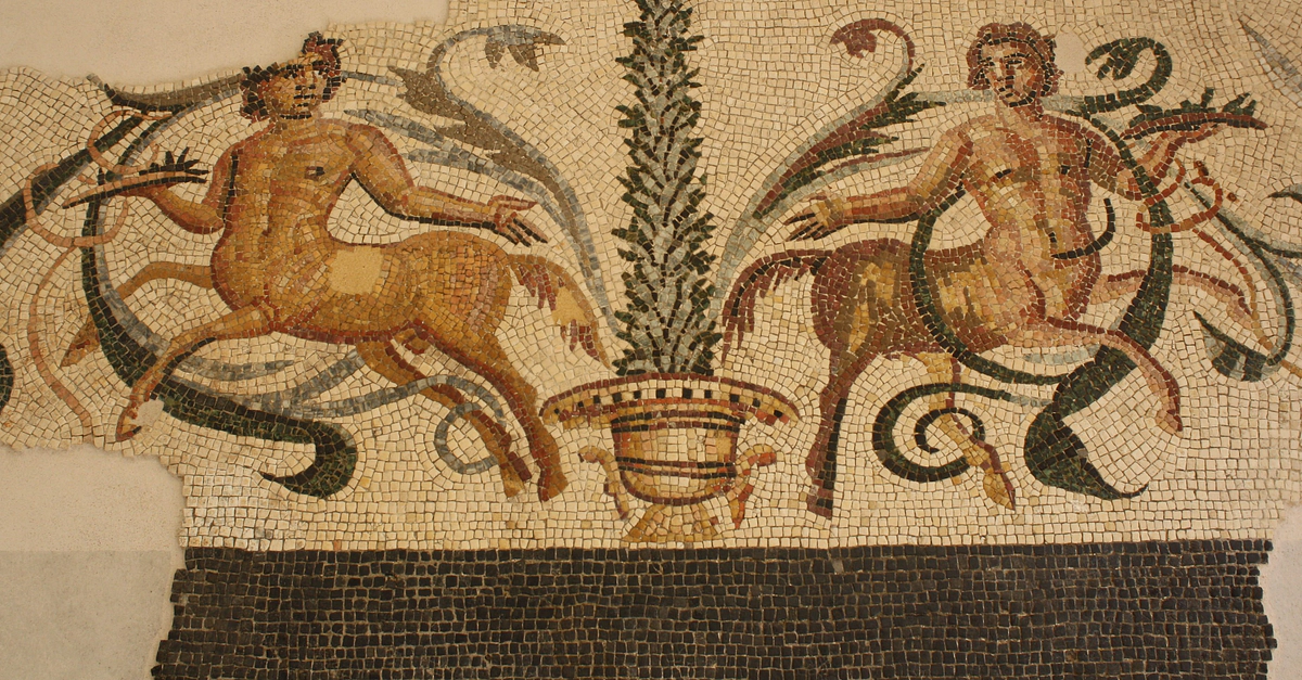 A Roman mosaic from Arausio (Orange, France) depicting two centaurs. 2nd century CE. (Archaeological Museum, Orange)