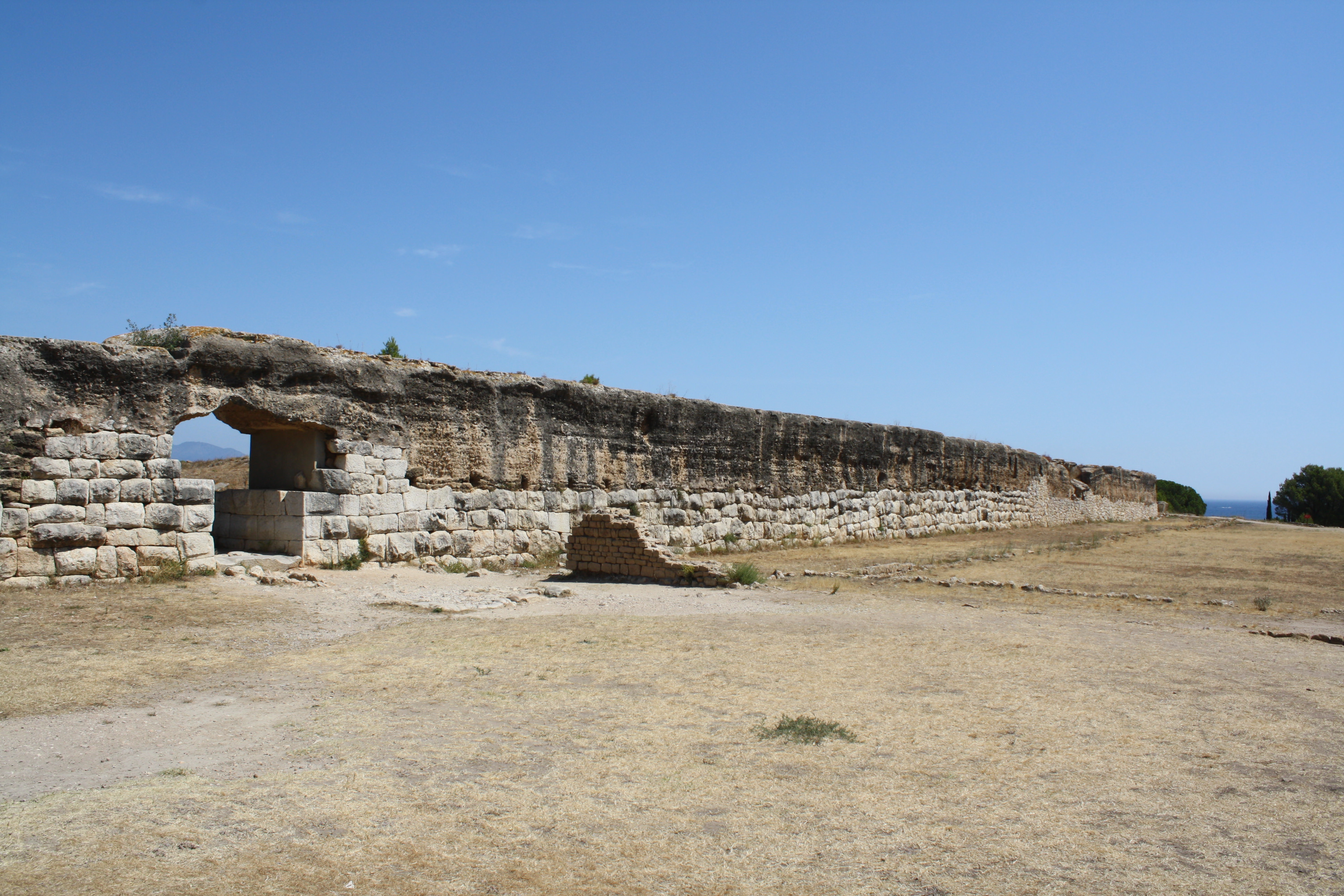 A section of the Roman city-wall of Empuries (Emporiae), Spain. 1st century BCE. The base of the wall was made using calcareous rock while the upper portion is of Roman concrete (opus caementicium).