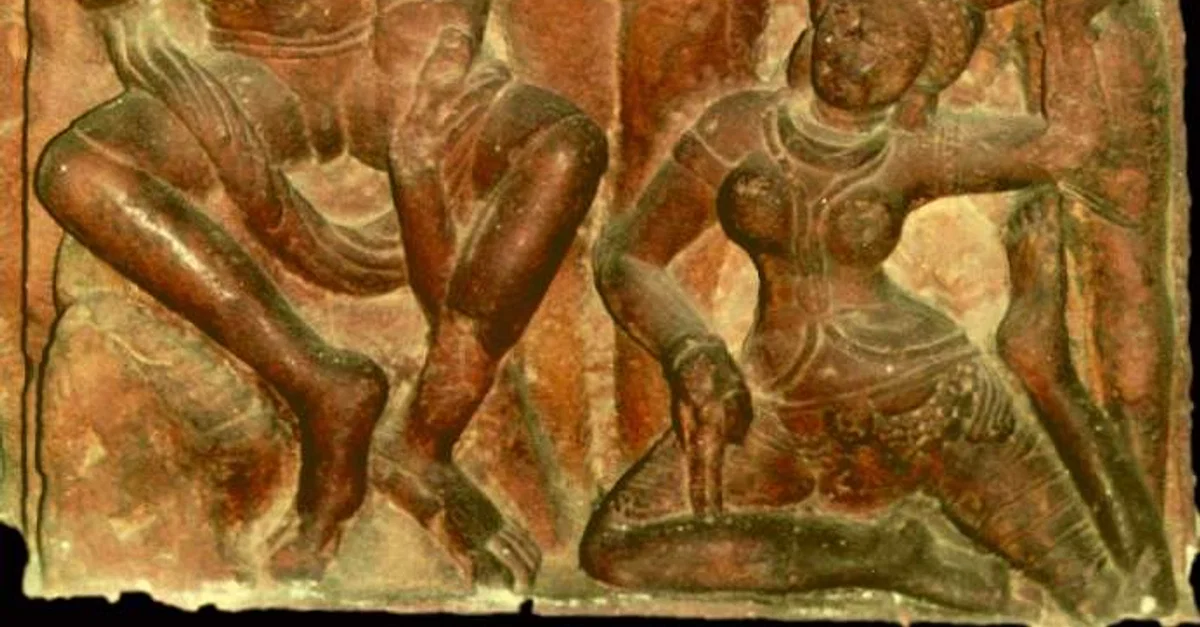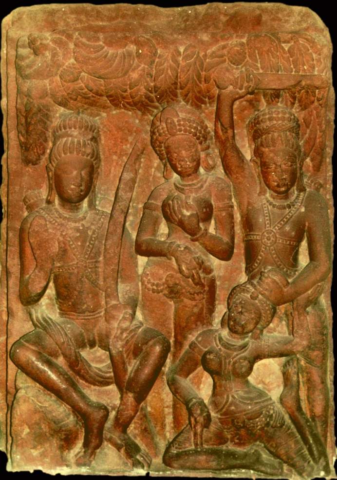 A relief scene from the Ramayana where Lakshmana cuts off the ears and nose of the demoness Surpanakha while Rama looks on from the left with his bow. Gupta period from Deogarh, Uttar Pradesh. (National Museum, New Delhi, India).