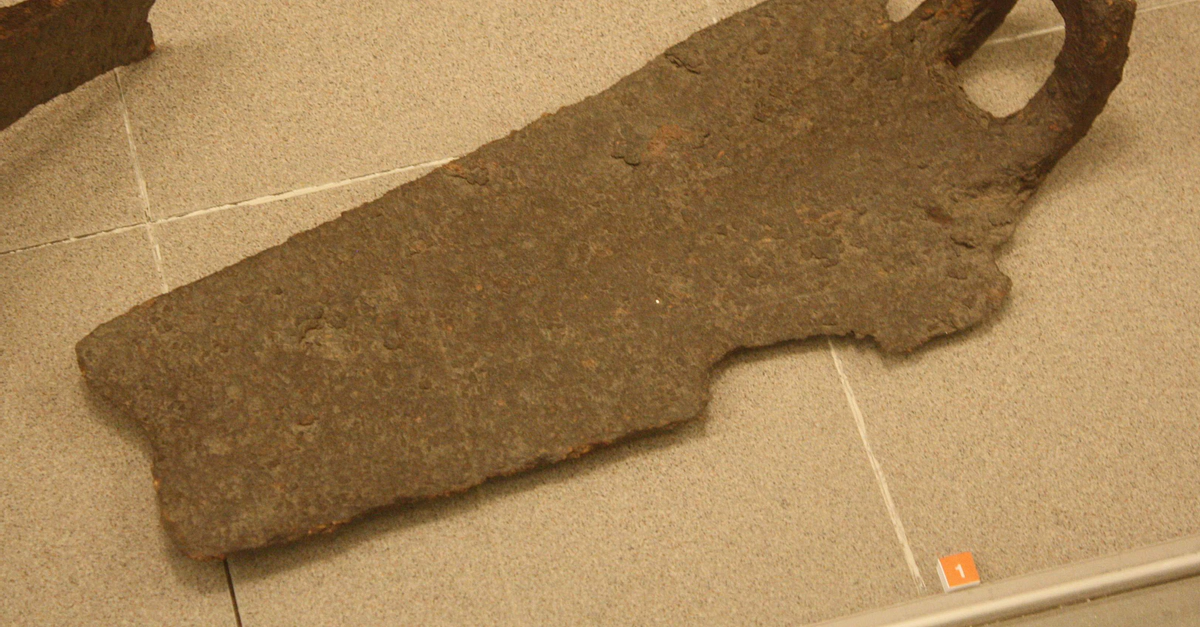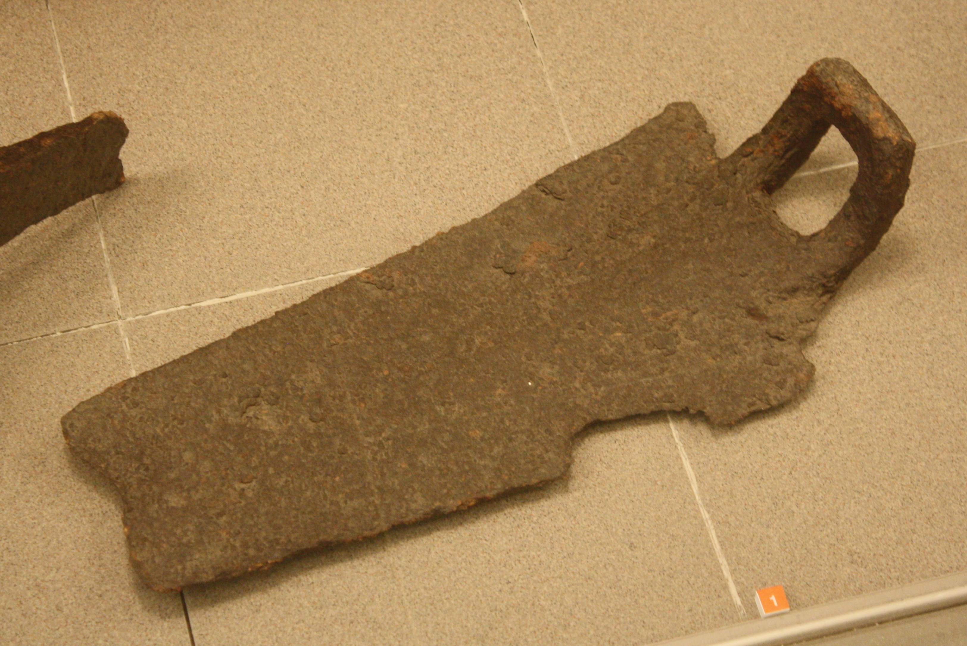 A Roman bronze hoe, 1st-3rd century CE. Empuries (Emporiae), Spain. (Archaeological Museum, Empuries)