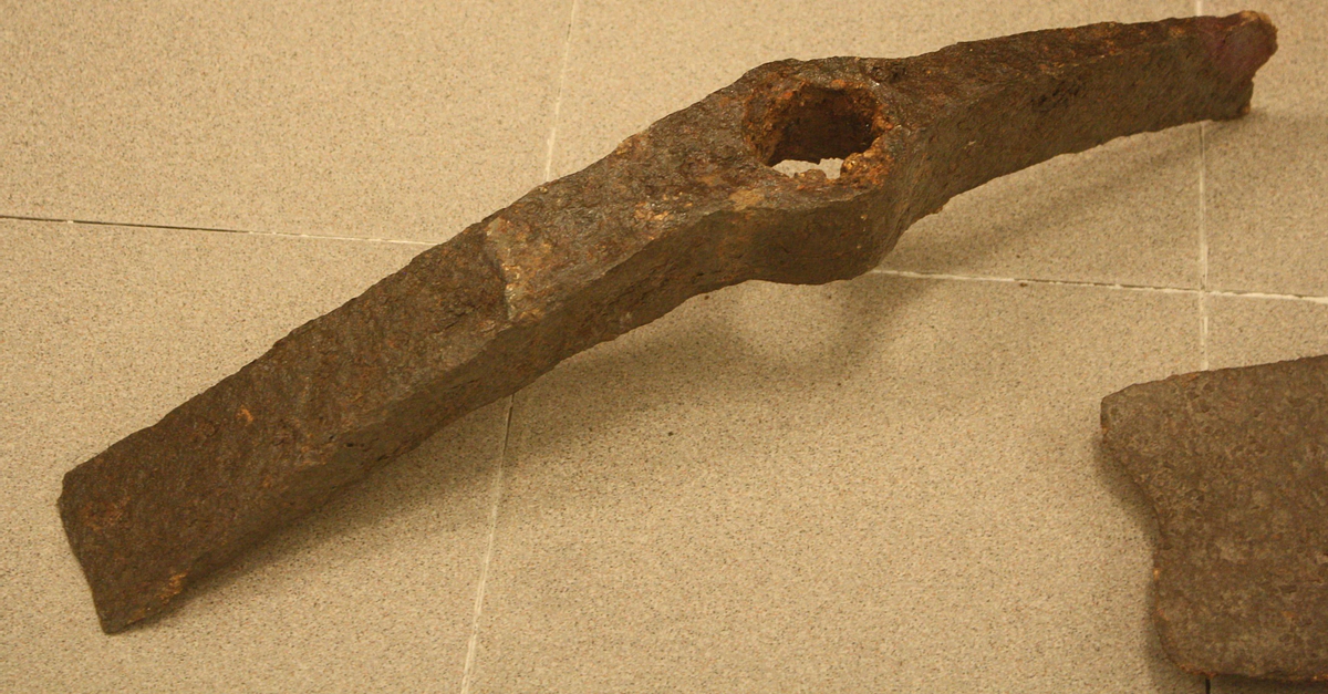 A Roman bronze pick, 1st-3rd century CE. Empuries (Emporiae), Spain. (Archaeological Museum, Empuries)