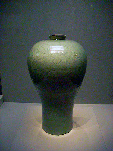 A maebyeong celadon vase with lotus decoration. 12th century CE, Goryeo Dynasty, Korea. (National Museum of Korea, Seoul, South Korea)