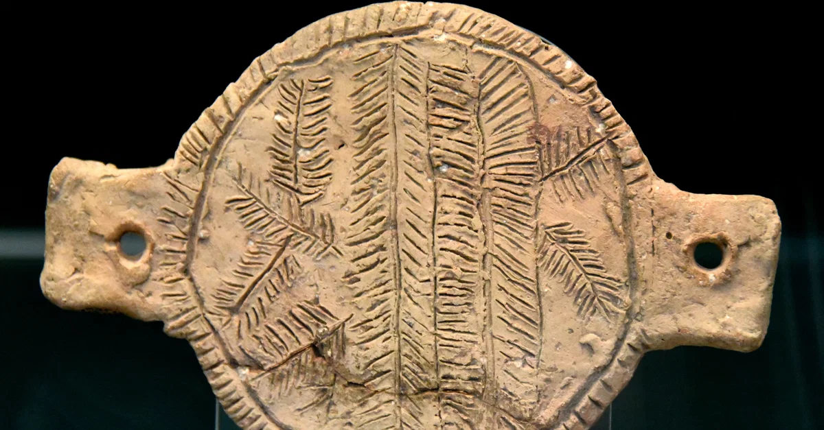 Pottery censer lid. Early alphabetic inscription on reverse. The Late Bronze Age at Lachish. (The British Museum, London).