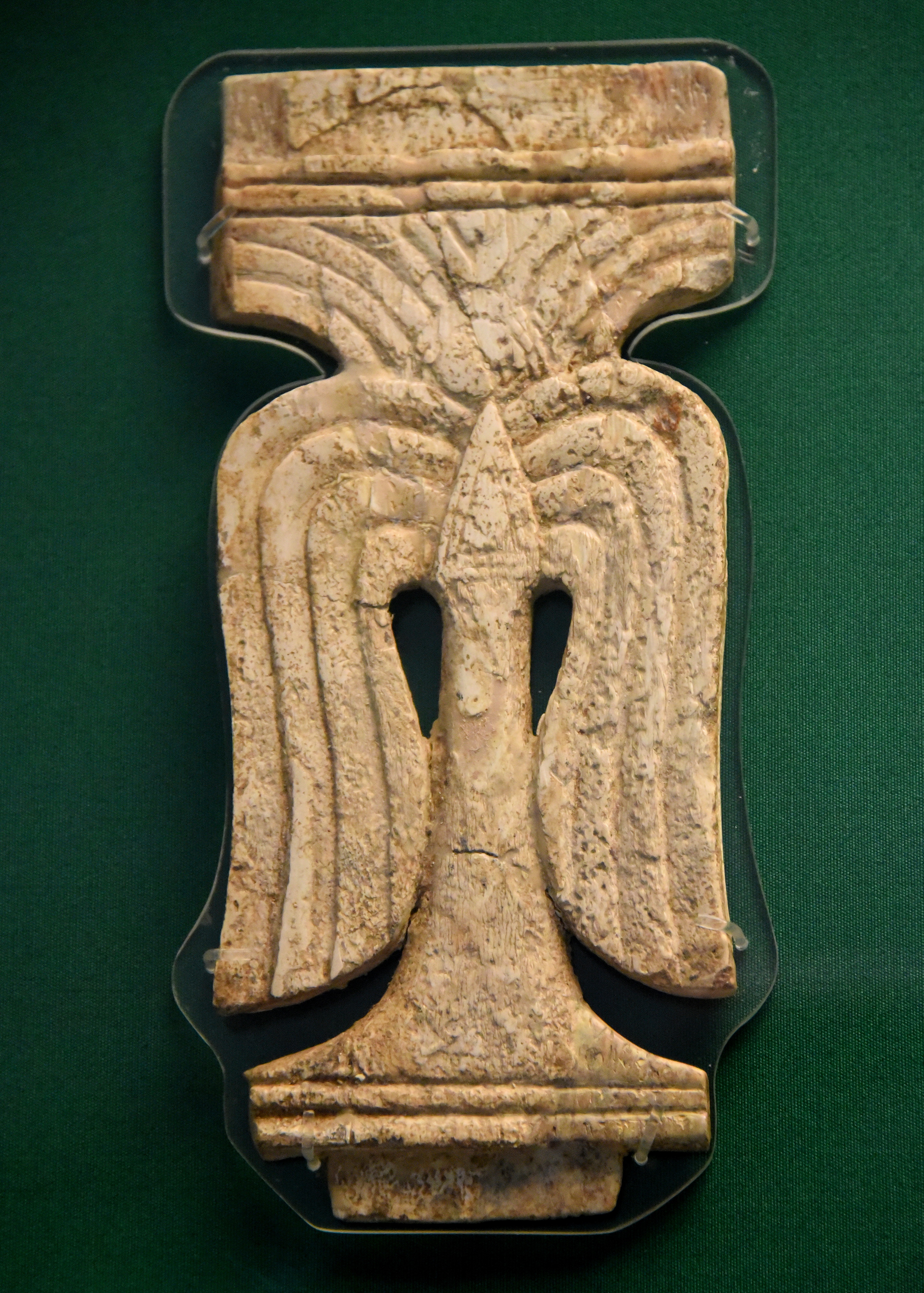 This ivory plaque shows a carving of a stylized palm tree. There are tenons at the top and bottom of the plaque. The overall depiction is very similar to a fragment found in Samaria (also housed in the Museum). Excavated by Sir Max Mallowan. Purchased from the British School of Archeology in Iraq; acquisition date 1961. Neo-Assyrian Period, 9th to 8th centuries BCE. From Fort Shalmaneser at Nimrud (ancient Kalhu), Mesopotamia, modern-day Iraq. (The British Museum, London).