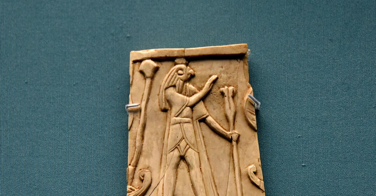 Amin, O. S. M. (2016, September 10). Nimrud Ivory Panel of a Falcon-headed God. World History Encyclopedia. https://www.worldhistory.org/image/5662/nimrud-ivory-panel-of-a-falcon-headed-god/
