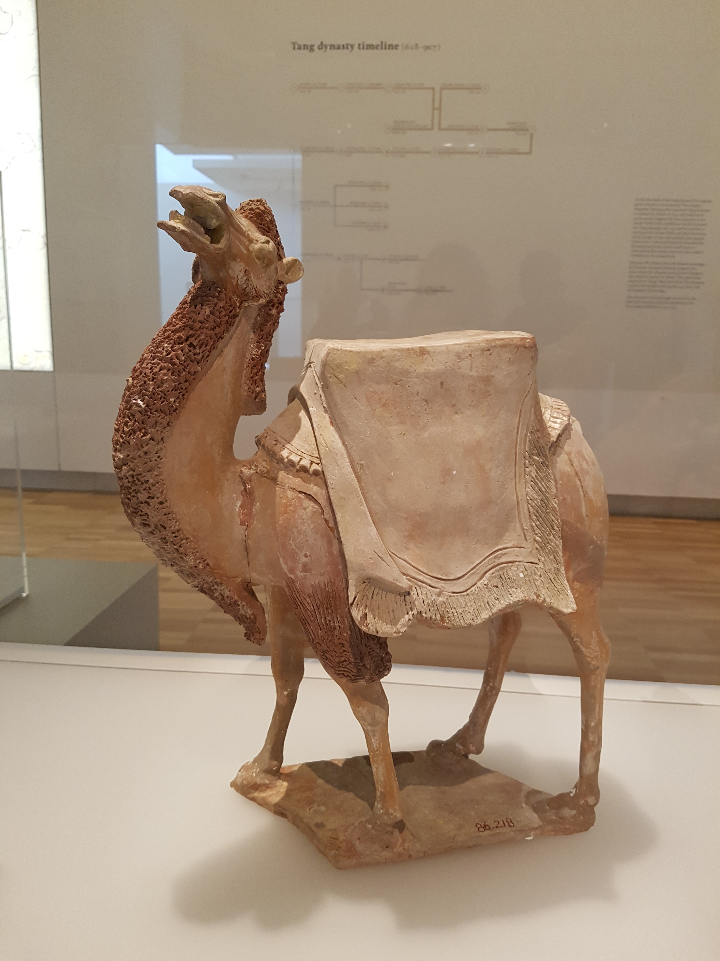Tang Dynasty camel, 650s-700s CE. Earthenware with pigment. 53 CM (Height) (Xi'an Museum. Photographed at the Art Gallery of NSW, Sydney Australia)