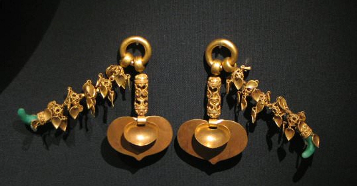 Gold earrings from the tomb of Baekje (Paekche) king Muryeong-wang (r. 501-523 CE) near ancient Ungjin (modern Gongju), Korea.