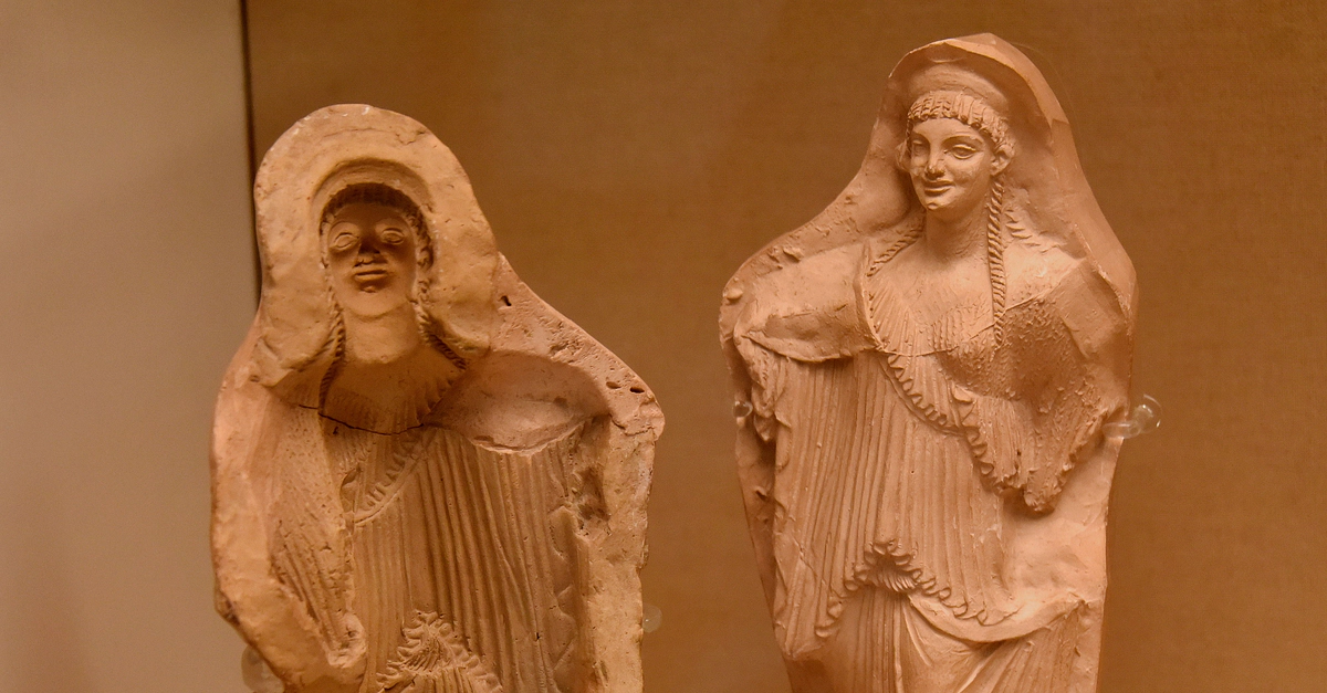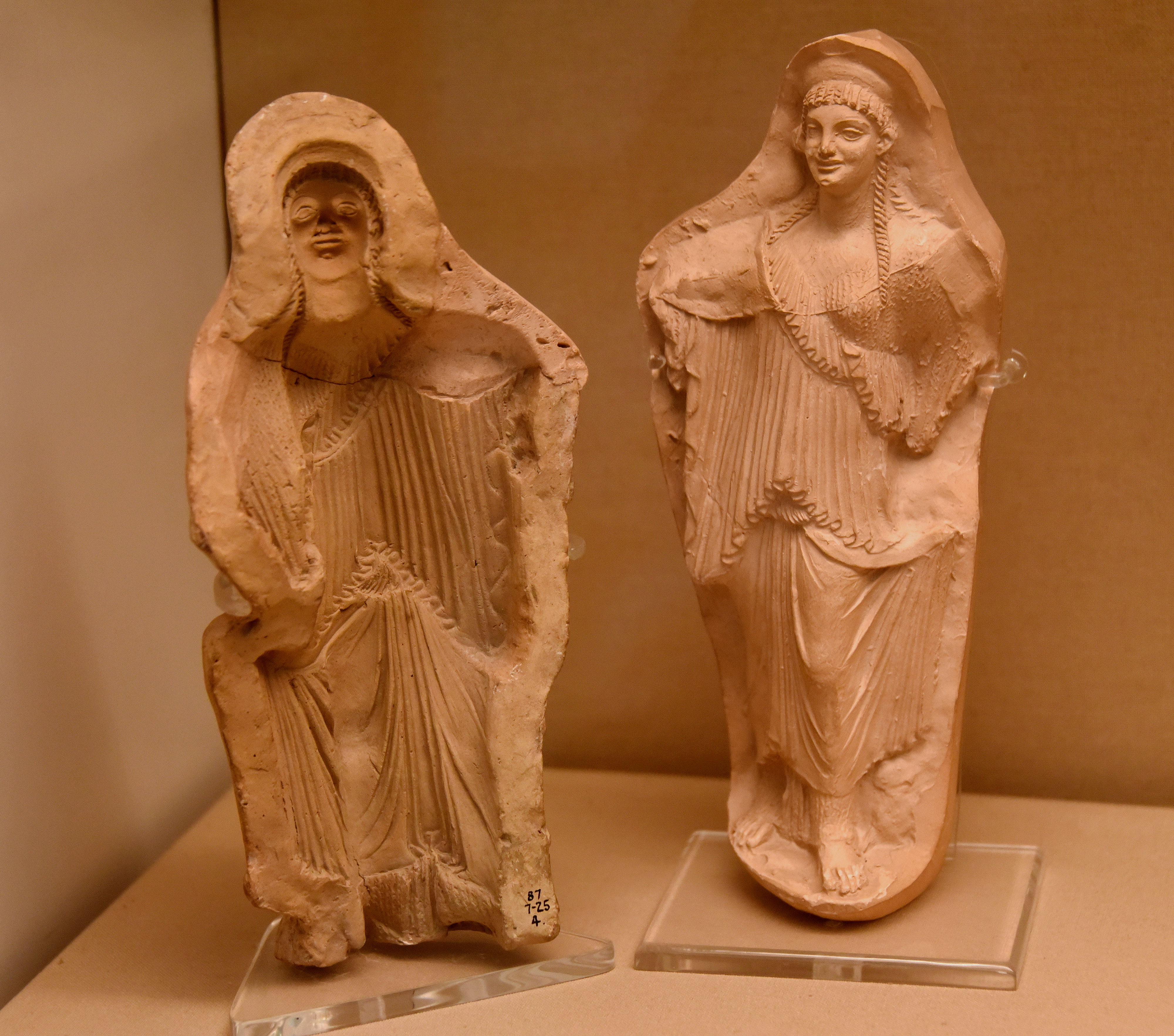 This mould was made for making terracotta statuettes of female figures. A modern cast (right) was taken from the mould. Made in modern-day southern Italy, about 100 BCE. From Taranto, southern Italy. (The British Museum, London).
