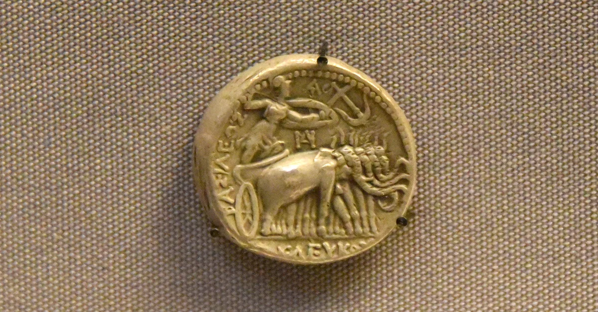 This is a silver tetradrachm coin. Reign of Seleucos I Nicator, 305-281 BCE. From Seleucid Syria. Donated by the Bank of England. (The British Museum, London).