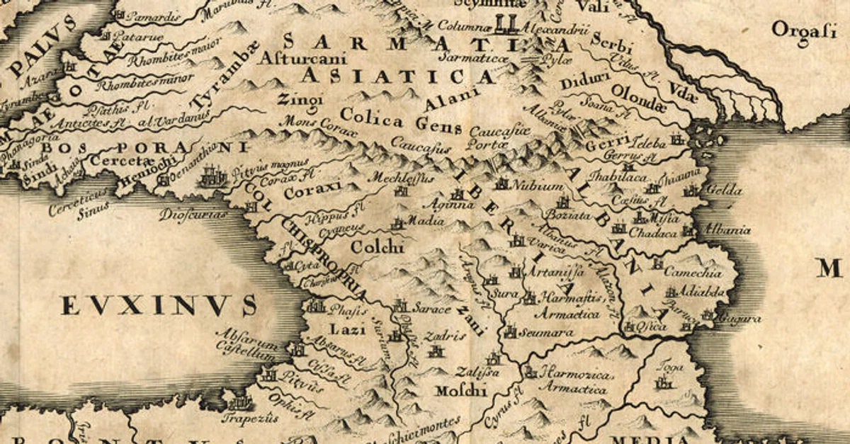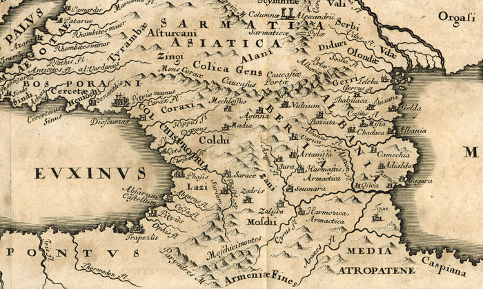 Detail from the map “Bosporus, Maeotis, Iberia, Albania et Sarmatia Asiatica “ by CHRISTOPHORUS CELLARIUS (1638-1707), from the book “Notitiae Orbis Antiqui sive Geographiae Plenioris Tomus Alter Asiam et Africam“, printed in Leipzig by Gleditschi, in 1706. Based on works of Herodotus, Pliny the Elder and Ptolemy.