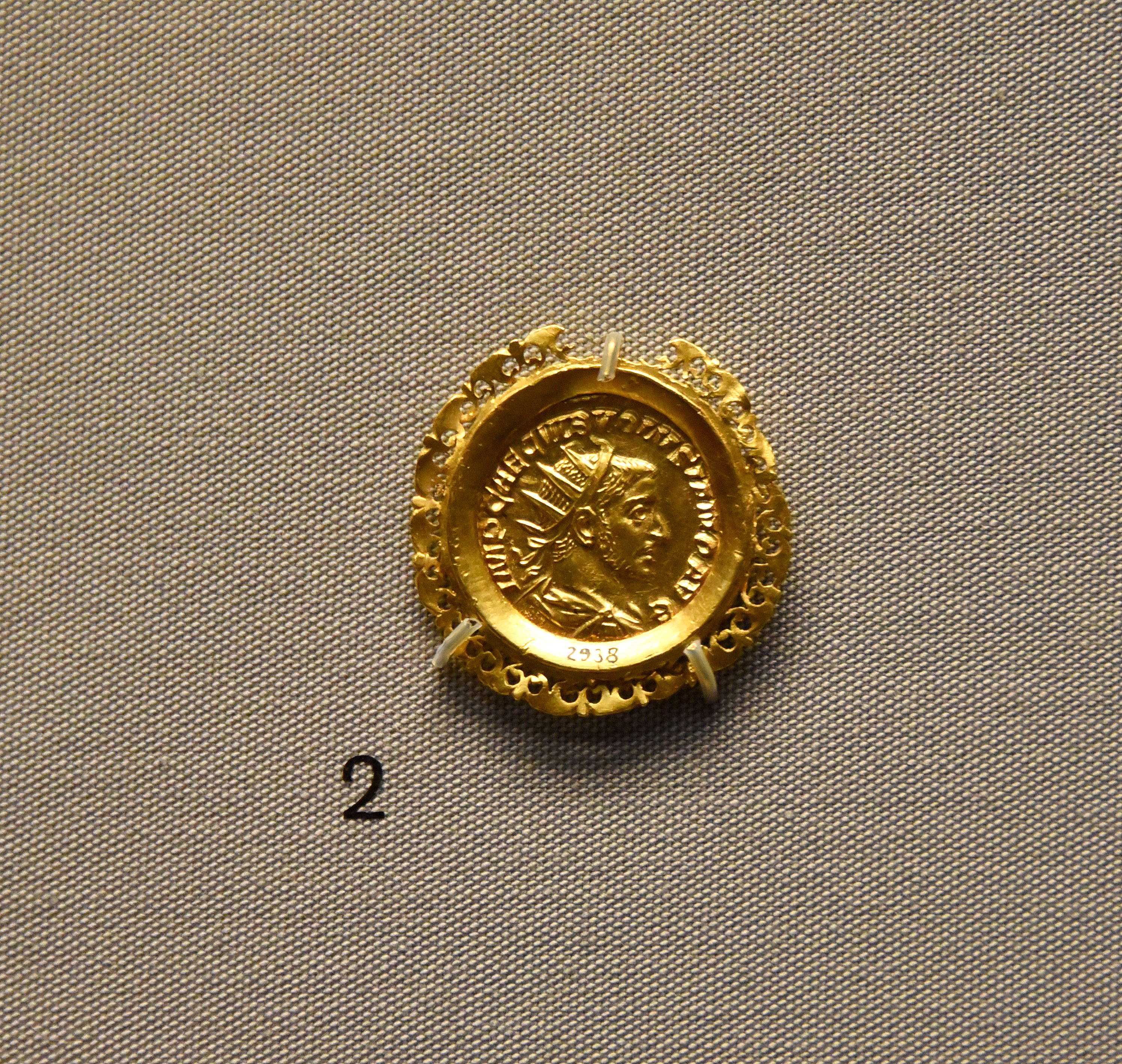 One of the simplest ways of displaying wealthiness was to wear it, as seen in this pendant made from a coin. The wealthier the wearer, the more elaborate the jewellery could be. An elaborate setting could be added to turn a gold coin into a pendant. This pendant was made from a gold aureus coin of the Roman Emperor Volusian (Volusianus). From the Roman Empire, circa 251-253 CE. (The British Museum, London).