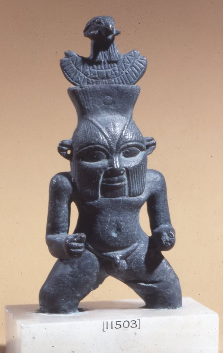 Bronze figure of Bes, with aegis of Amun on his head, from the New Kingdom of Egypt.