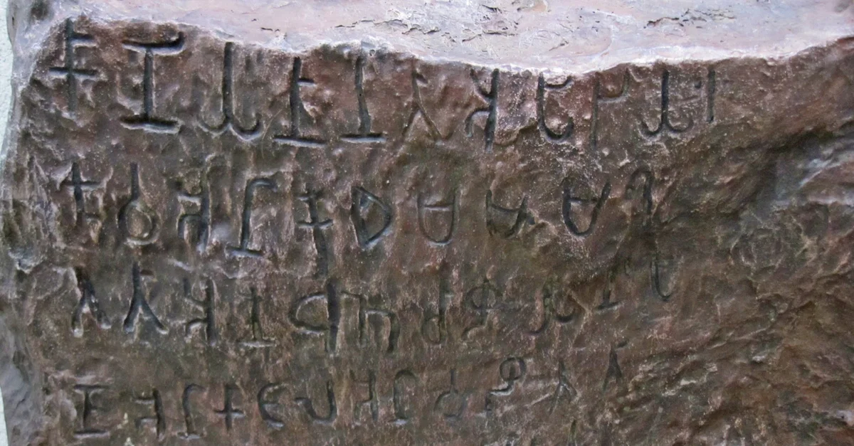 Example of a Tamil Brahmi inscription carved on rock found at Dakshinachitra, Chennai (southern India)
