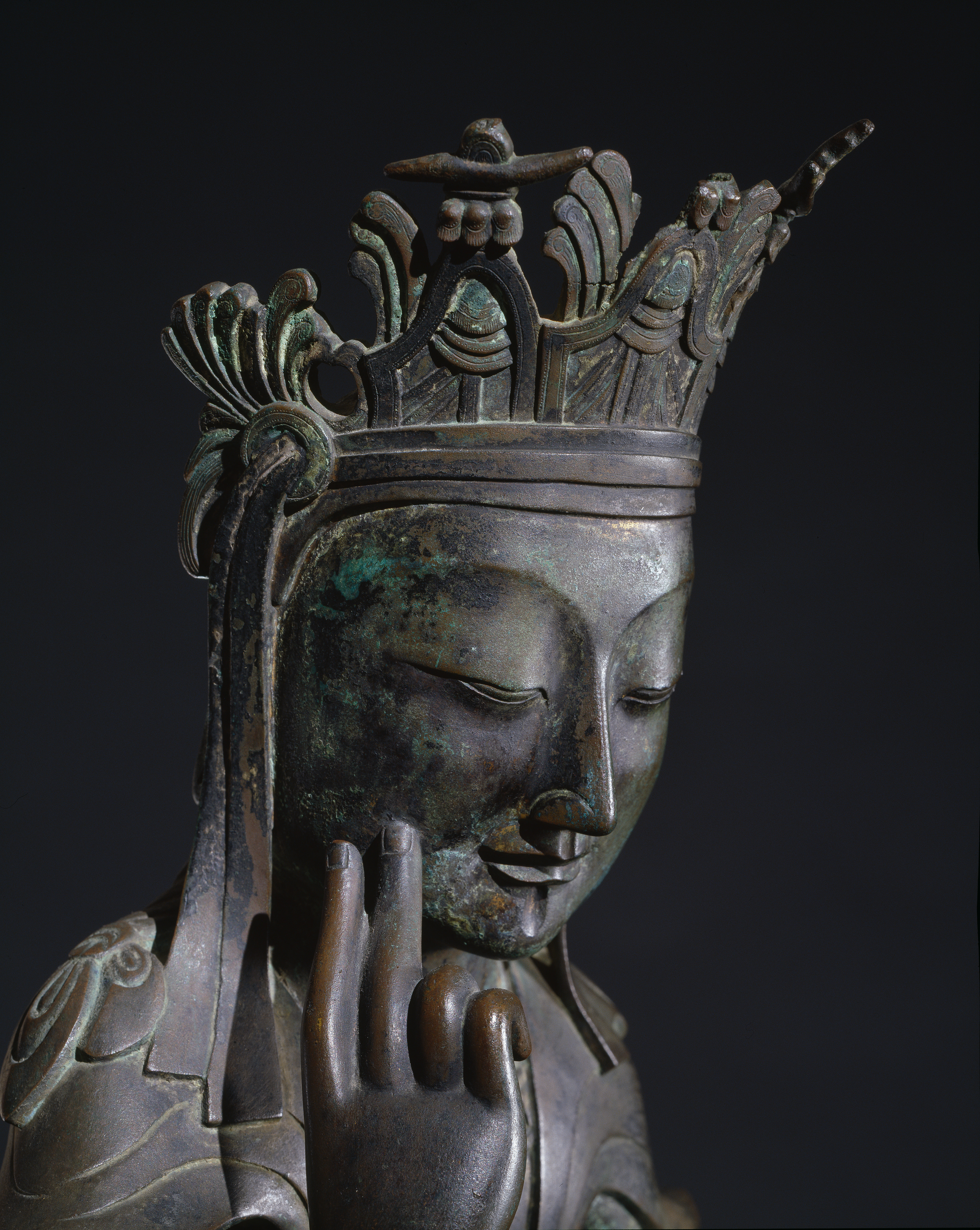 A detail of a gilt bronze statue of the Maitreya (coming) Buddha. Three Kingdoms Period, Korea, c. 600 CE. Height: 80 cm. (National Museum of Korea, Seoul, South Korea)