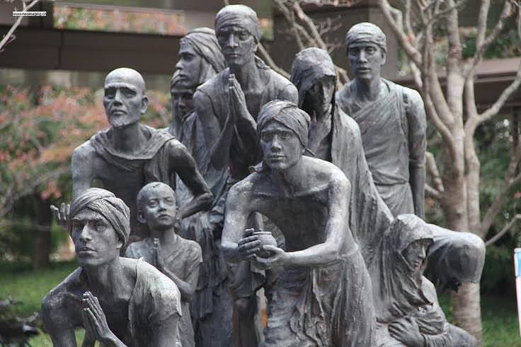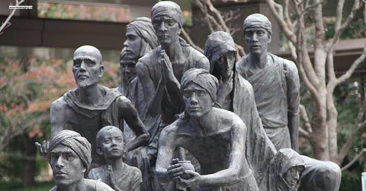 A modern sculpture by Shinnya Nakamura depicting Cunda and his 15 friends, the boy who gave the Buddha his last meal. (Image used by permission of Shinnyo-en, Tachikawa, Japan)