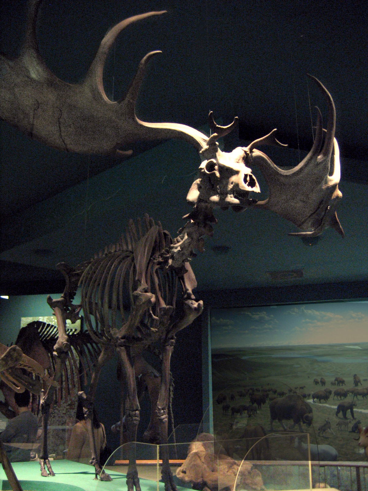 Megaloceros giganteus (generally known as Irish- or Giant Elk) skeleton on display at the National Museum of Natural History, Washington, D.C. Megaloceros is an extinct genus of deer that lived from the Late Pliocene to the Late Pleistocene and was, as with other prehistoric megafauna, hunted by prehistoric humans.