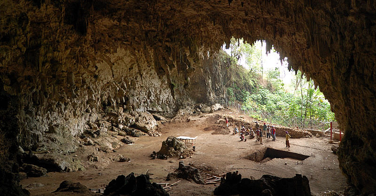 Liang Bua Cave is situated on the island of Flores, Indonesia. Here, in 2003, the remains of the extinct species Homo floresiensis (nicknamed 'hobbit') were discovered.