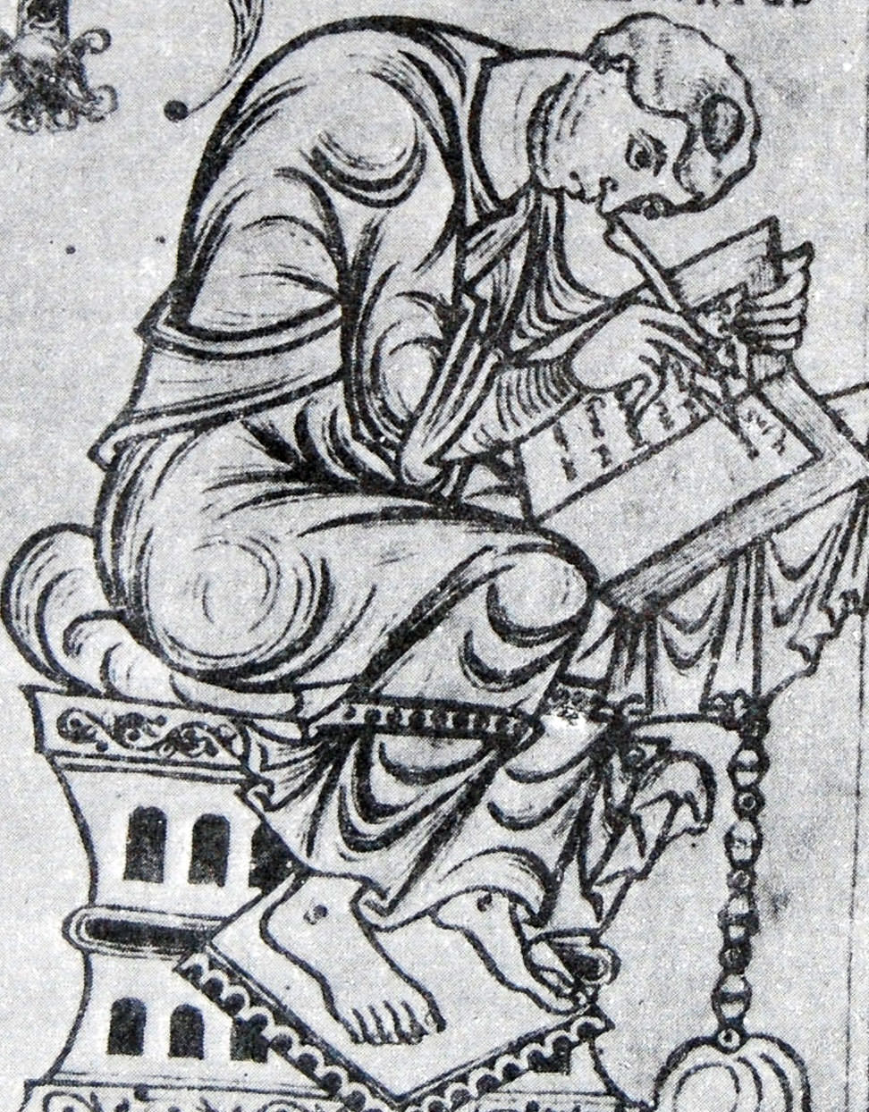 An engraving from the St. Epure codex depicting Paulus Orosius (commonly known simply as 'Orosius') who lived in the 5th century CE and was a Christian theologian and historian of note.