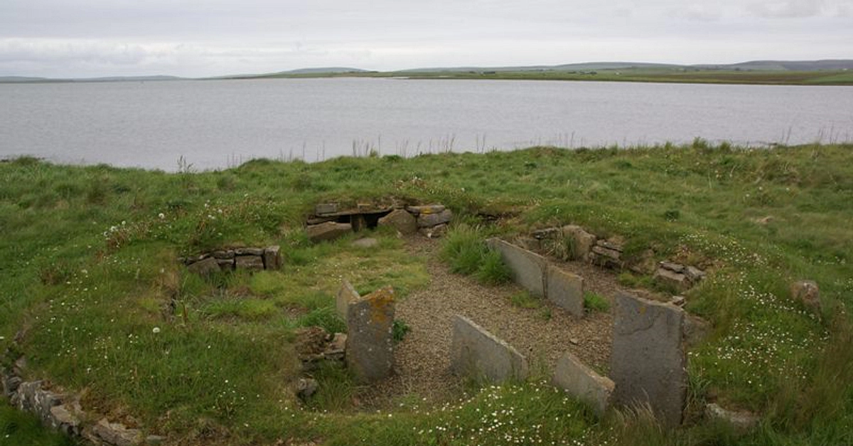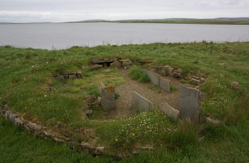 The remains of House 3 of the Barnhouse Settlement, a Neolithic village located in Antaness, Orkney, Scotland, which was inhabited between c. 3300 and 2600 BCE.