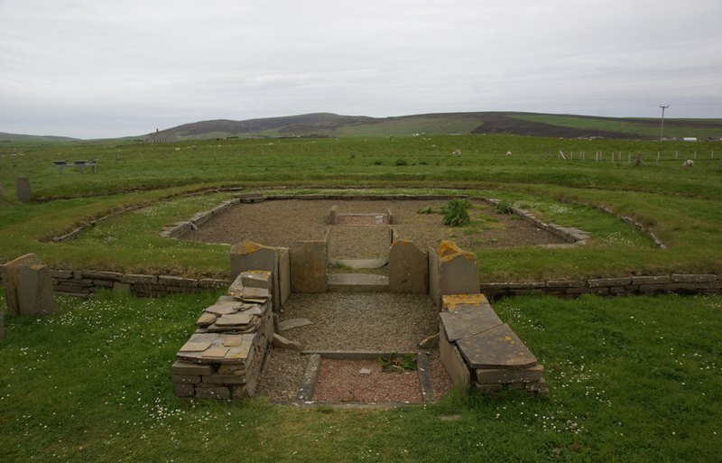 Structure 8 of the Barnhouse Settlement, a Neolithic village located in Antaness, Orkney, Scotland, which was inhabited between c. 3300 and 2600 BCE.