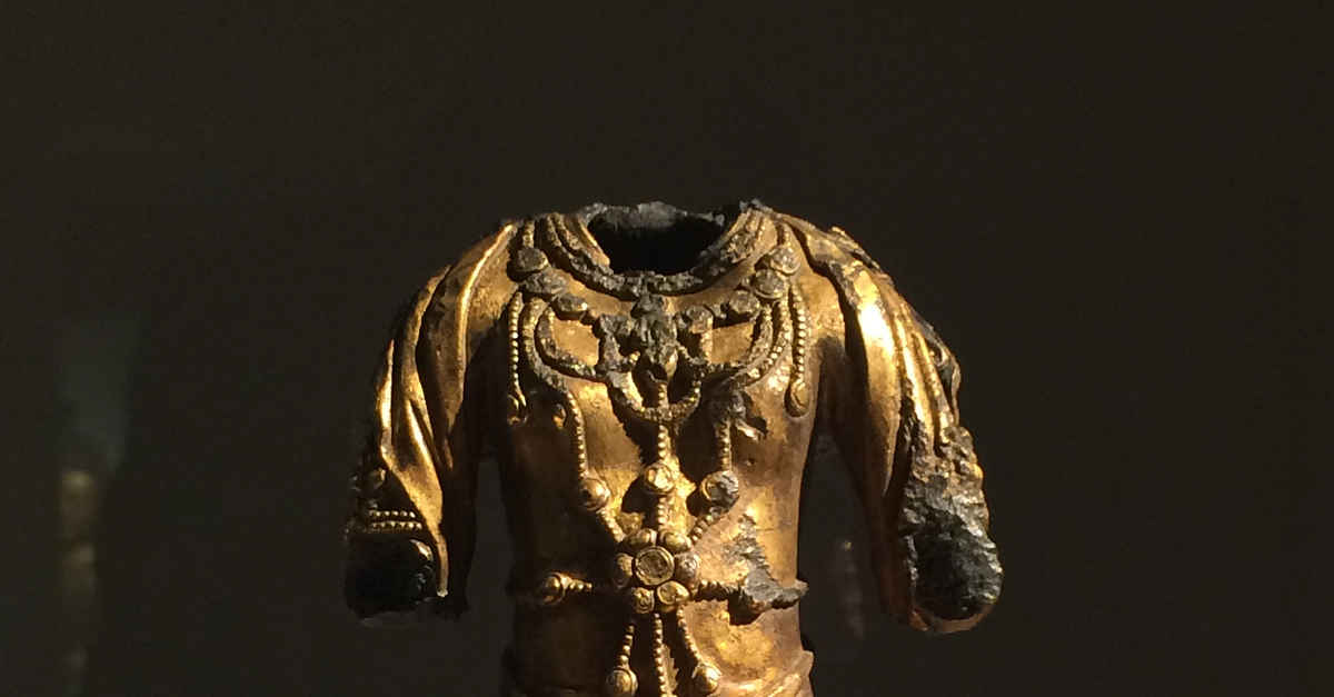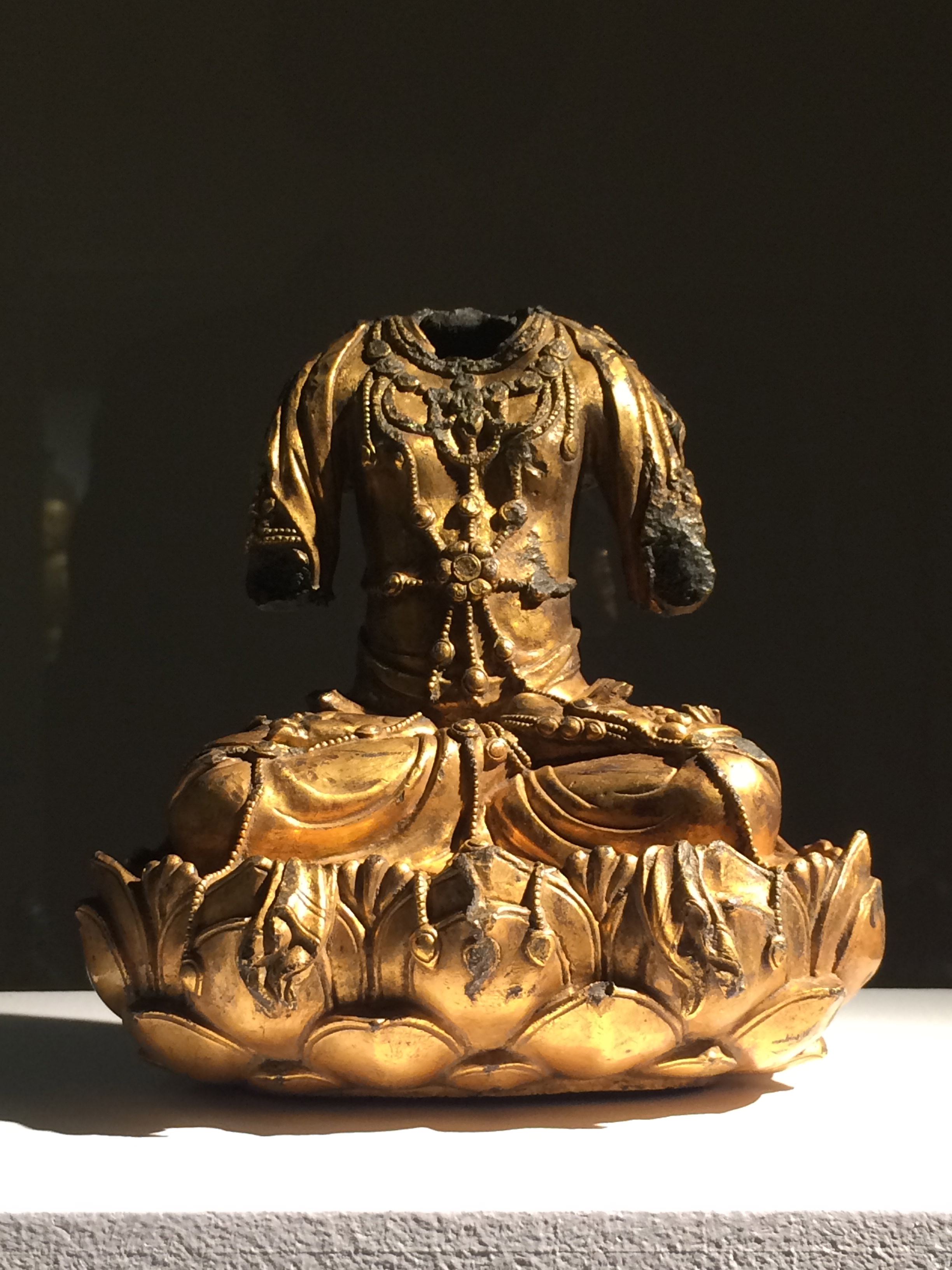 Gilt bronze bodhisattva seated on a lotus leaf. Goryeo Dynasty, 13th century CE. (Musée Guimet, Paris)
