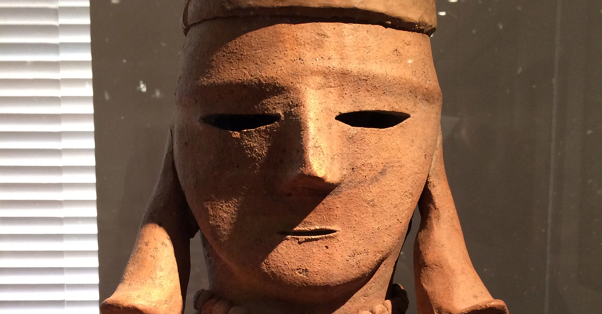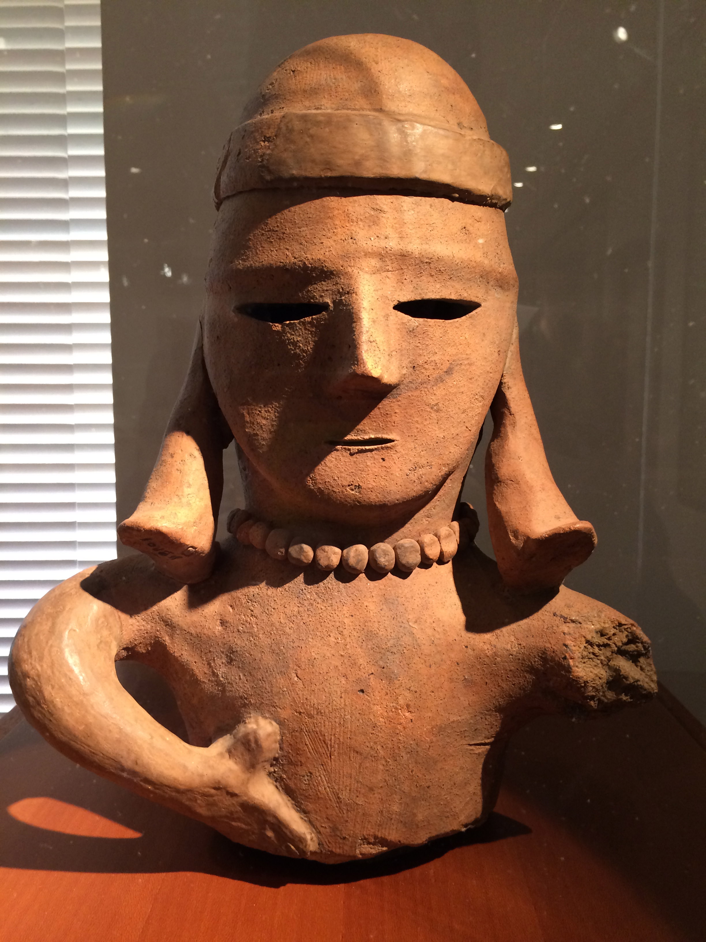 A terracotta Haniwa figurine. Gunma Province, Japan, 6th century CE. Such figures were placed either atop or alongside burial mounds. (Musée Guimet, Paris)