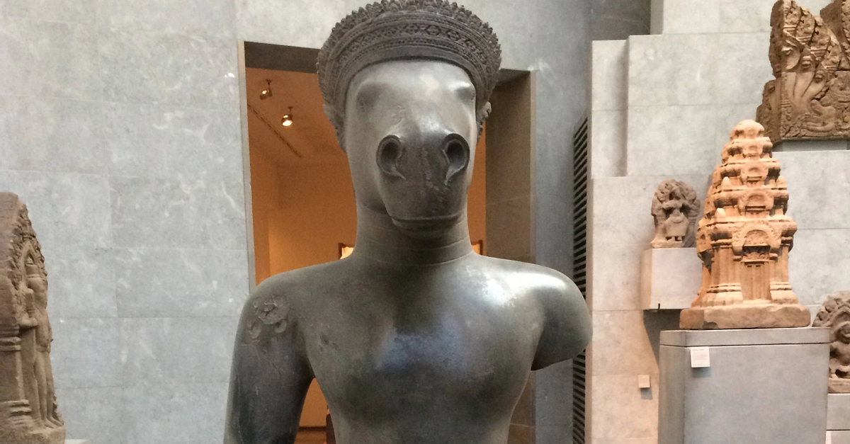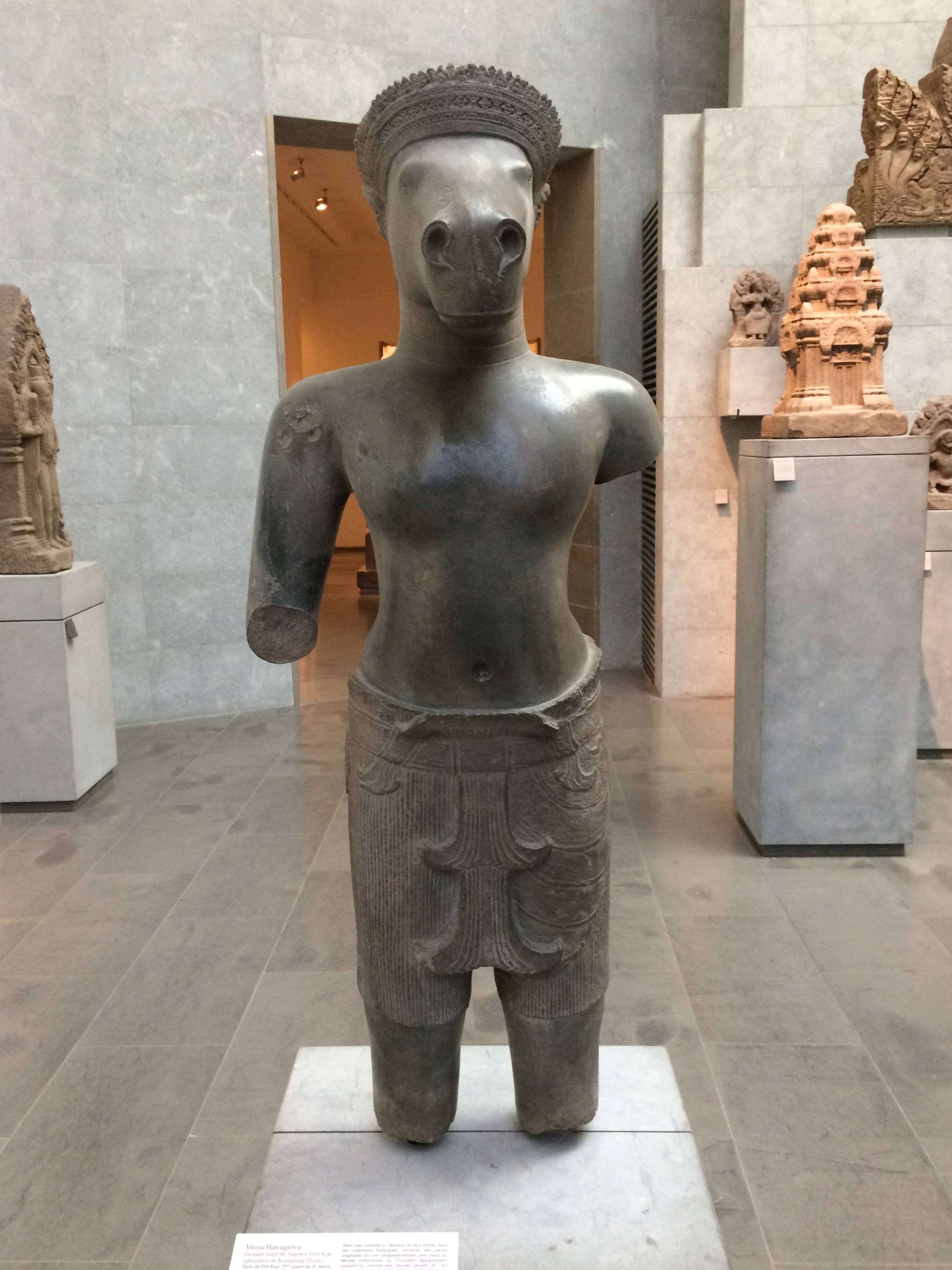 A limestone statue depicting Vishnu Hayagriva, the horse-headed avatar of the Hindu god. Sambor Prei Kuk, Cambodia. 10th century CE. (Musée Guimet, Paris)