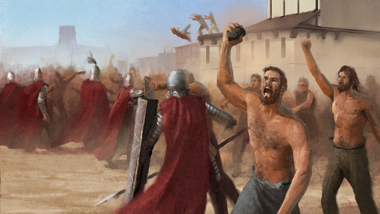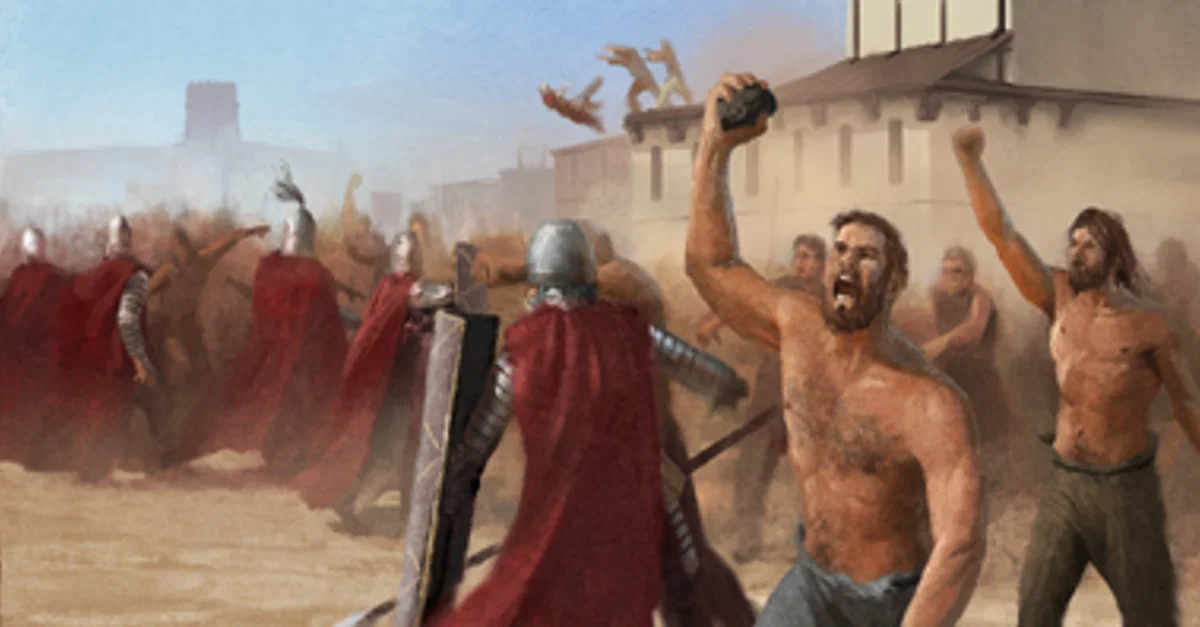 An artist's impression of what an ancient riot may have looked like such as were under the jurisdiction of the cohortes urbanae to control in ancient Rome.