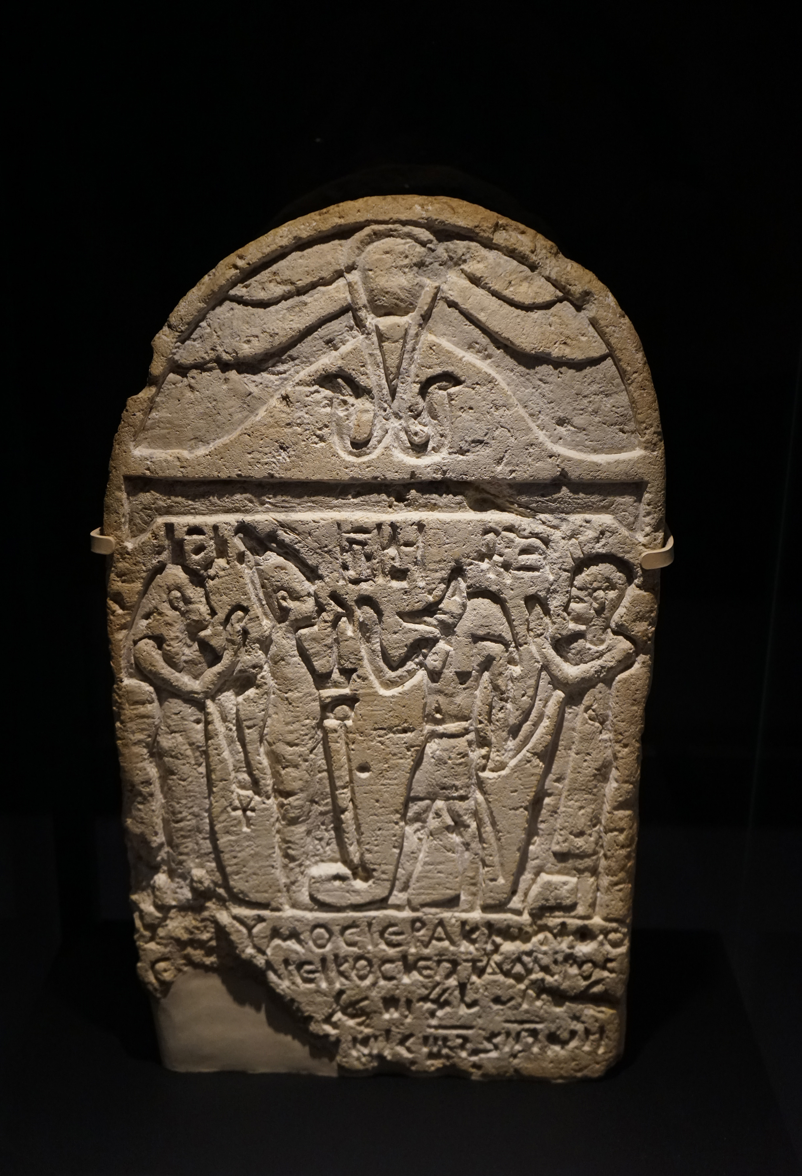 Limestone funerary stela, 100 BCE-100 CE. Egypt. This funerary stela commemorates the death of a man named Didymos. It was made during the Ptolemaic period or soon after the Roman conquest. This image was taken at the National Museum of Australia in the British Museum travelling exhibition A History of the World in 100 (and 1) Objects.
