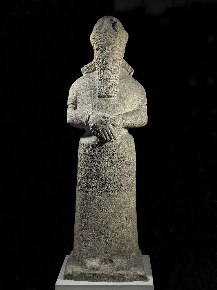 Limestone statue of attendant god dedicated to Nabu by Adad-Nirari III and Sammuramat. The figure was dedicated to Nabu, the god of learning, in the temple of Ezida at Calah by the governor of Calah and other cities, for the life of the king and of his consort Sammuramat (probably the original of the legendary Semiramis), of the donor and of the people under his rule. The unjustified inference has been drawn that this figure represented Nabu, but it clearly represents an attendant of the kind found in the prophylactic terracotta figurines.