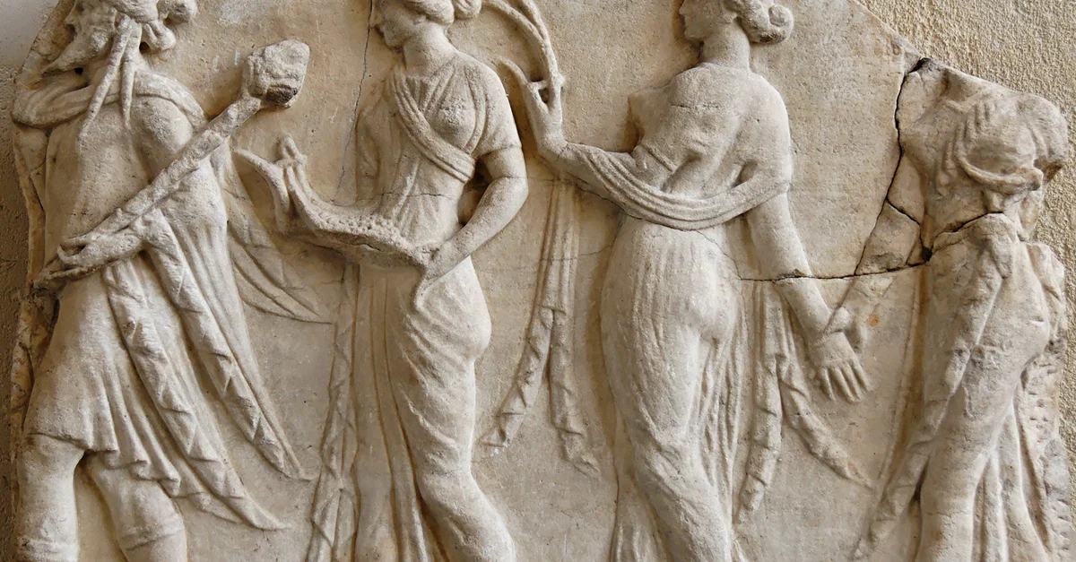 A marble relief depicting the god Dionysos leading the Horae, personifications of the seasons in Greek mythology. 1st century CE Roman copy of an earlier Greek original. (Louvre Museum, Paris)