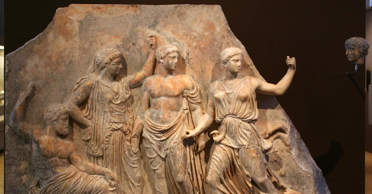 A relief showing Zeus and Leto with their offspring Apollo and Artemis to the right. 420-410 BCE. (Archaeological Museum of Brauron, Greece)