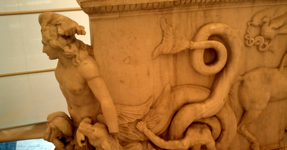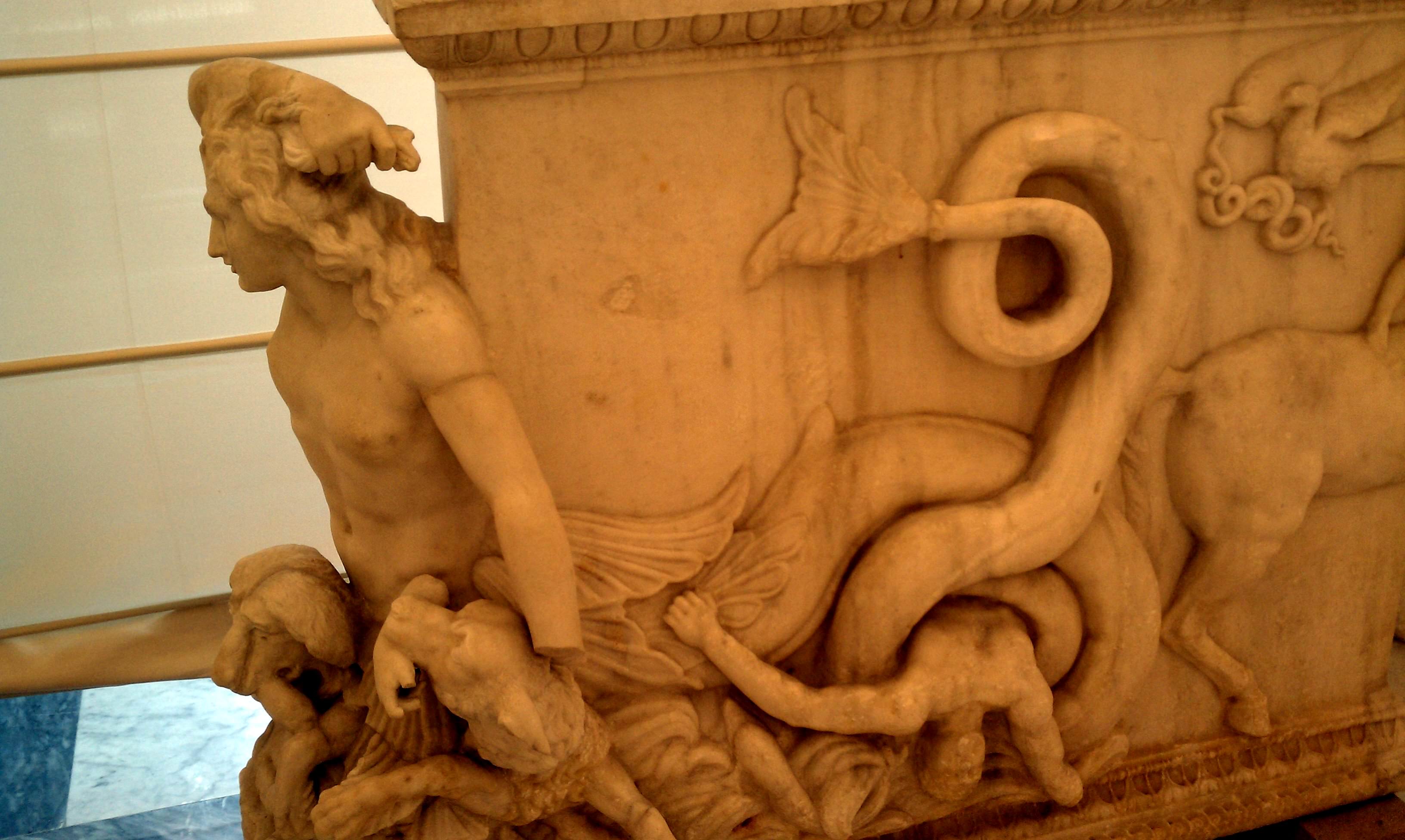 A table support representing the sea monster Charybdis, who was said to haunt the straits between Sicily and the Italian peninsula. 2nd century CE.