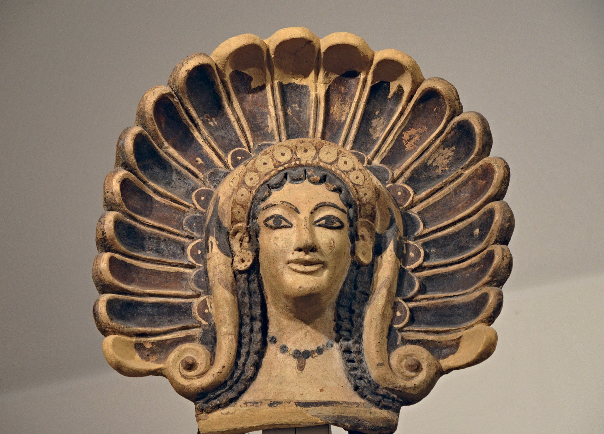 A decorative end roof tile in the form of a maenad from the Etruscan Portonaccio Temple at Veii, central Italy. 510 BCE. (National Etruscan Museum of Villa Giulia, Rome)