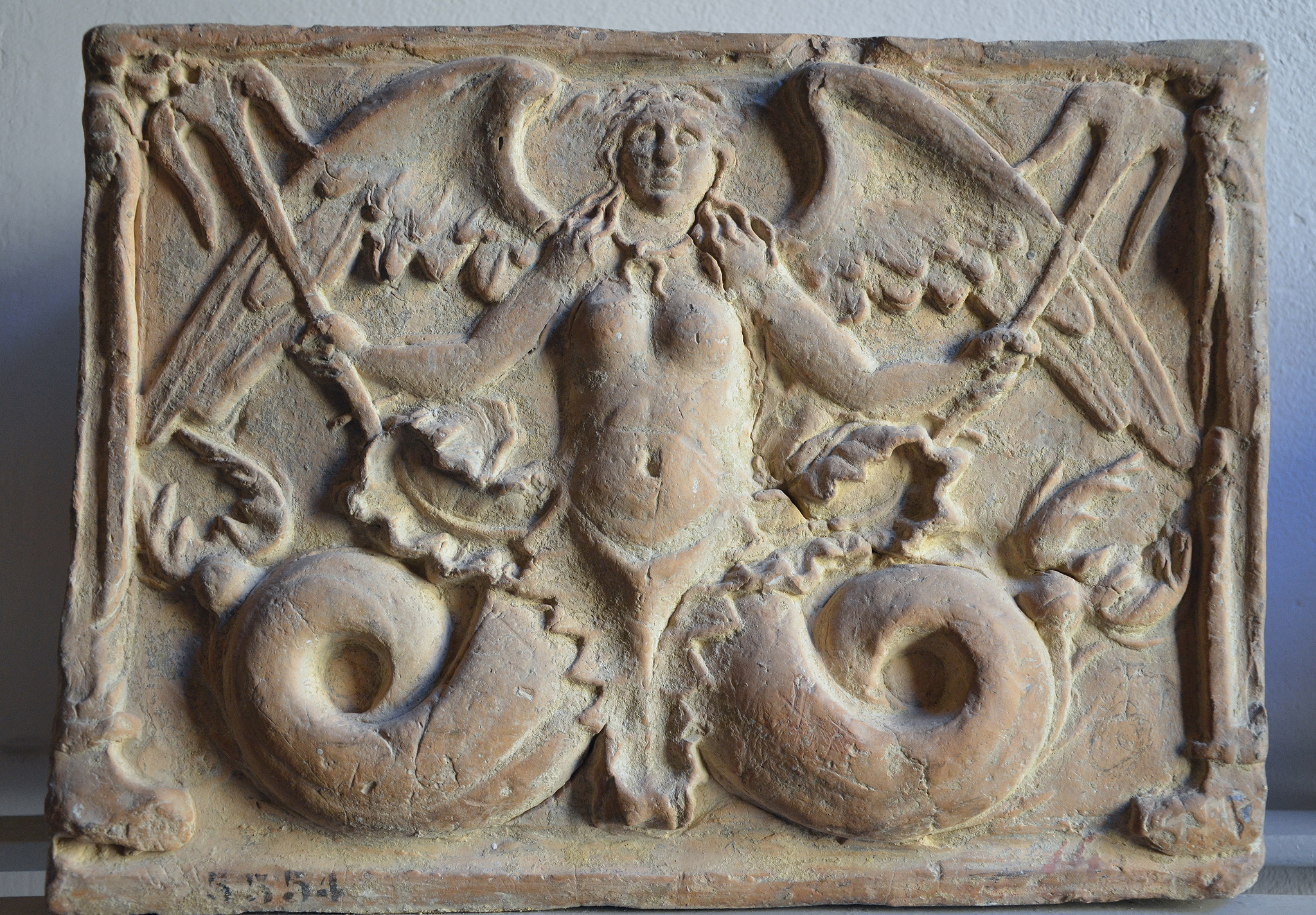 An Etruscan funerary urn from Volterra showing a winged Triton. 2nd century BCE. (National Archaeological Museum of Florence, Italy)