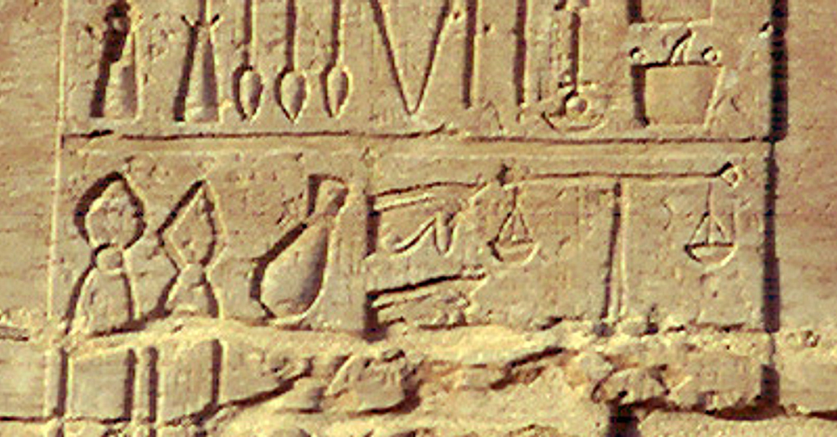 A relief from the Temple of Kom Ombo depicting various Egyptian medical instruments. Ptolemaic Period.