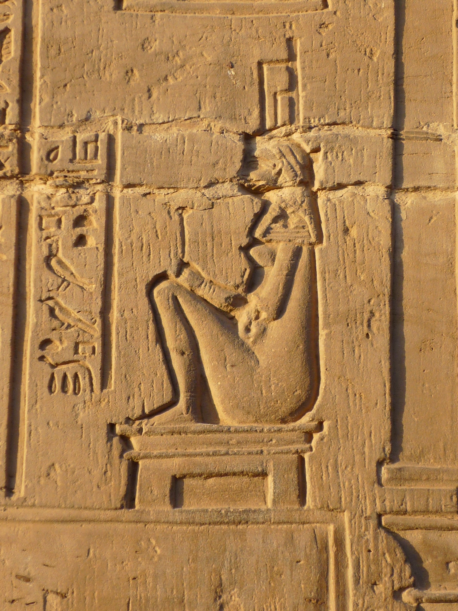 A relief from the Temple of Kom Ombo of a woman sitting on a birthing stool. Ptolemaic Period.